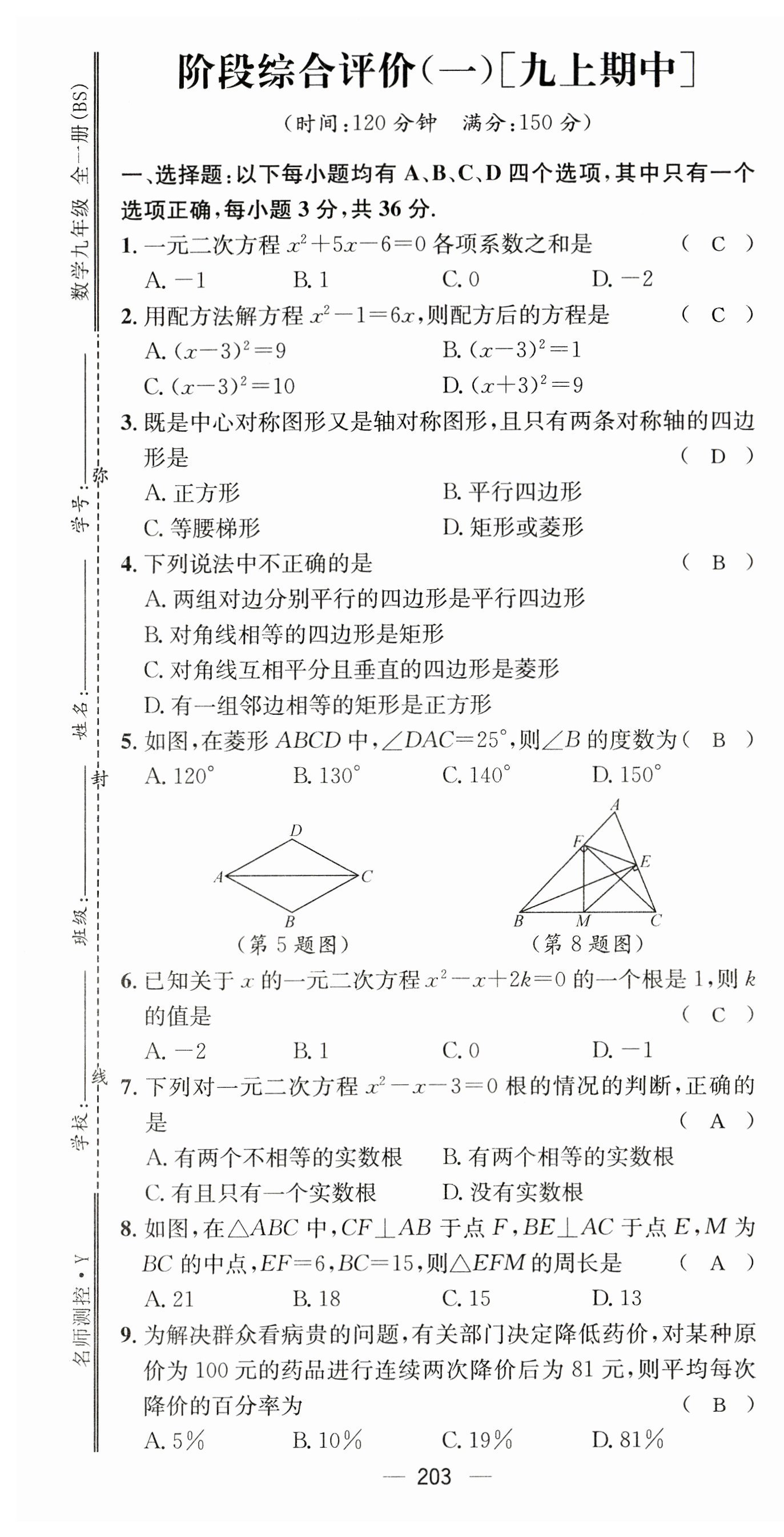 2023年名师测控九年级数学全一册北师大版贵州专版
