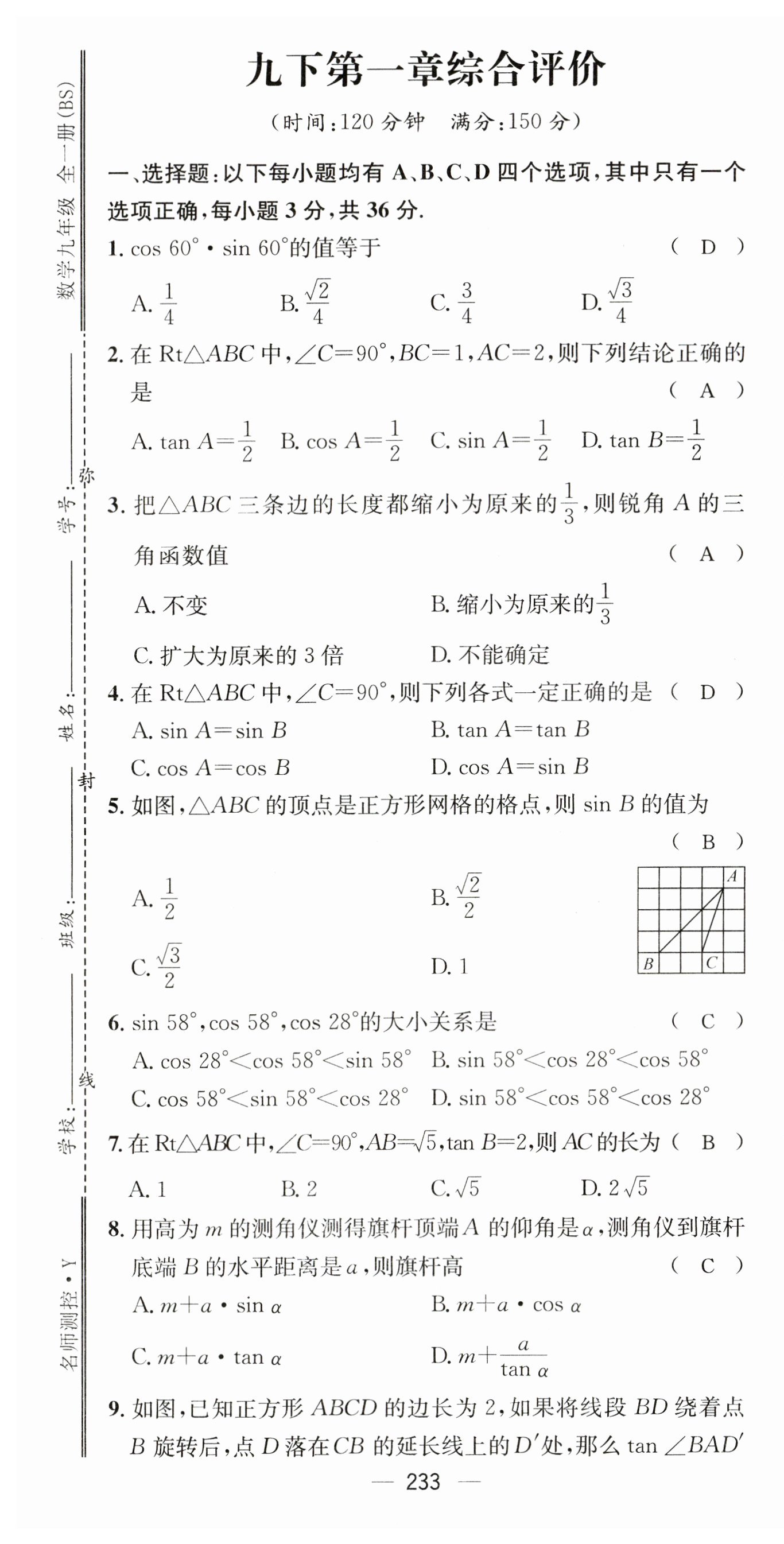注:目前有些书本章节名称可能整理的还不是很完善,但都是按照顺序排列的,请同学们按照顺序仔细查找。练习册 2023年名师测控九年级数学全一册北师大版贵州专版 答案主要是用来给同学们做完题方便对答案用的,请勿直接抄袭。