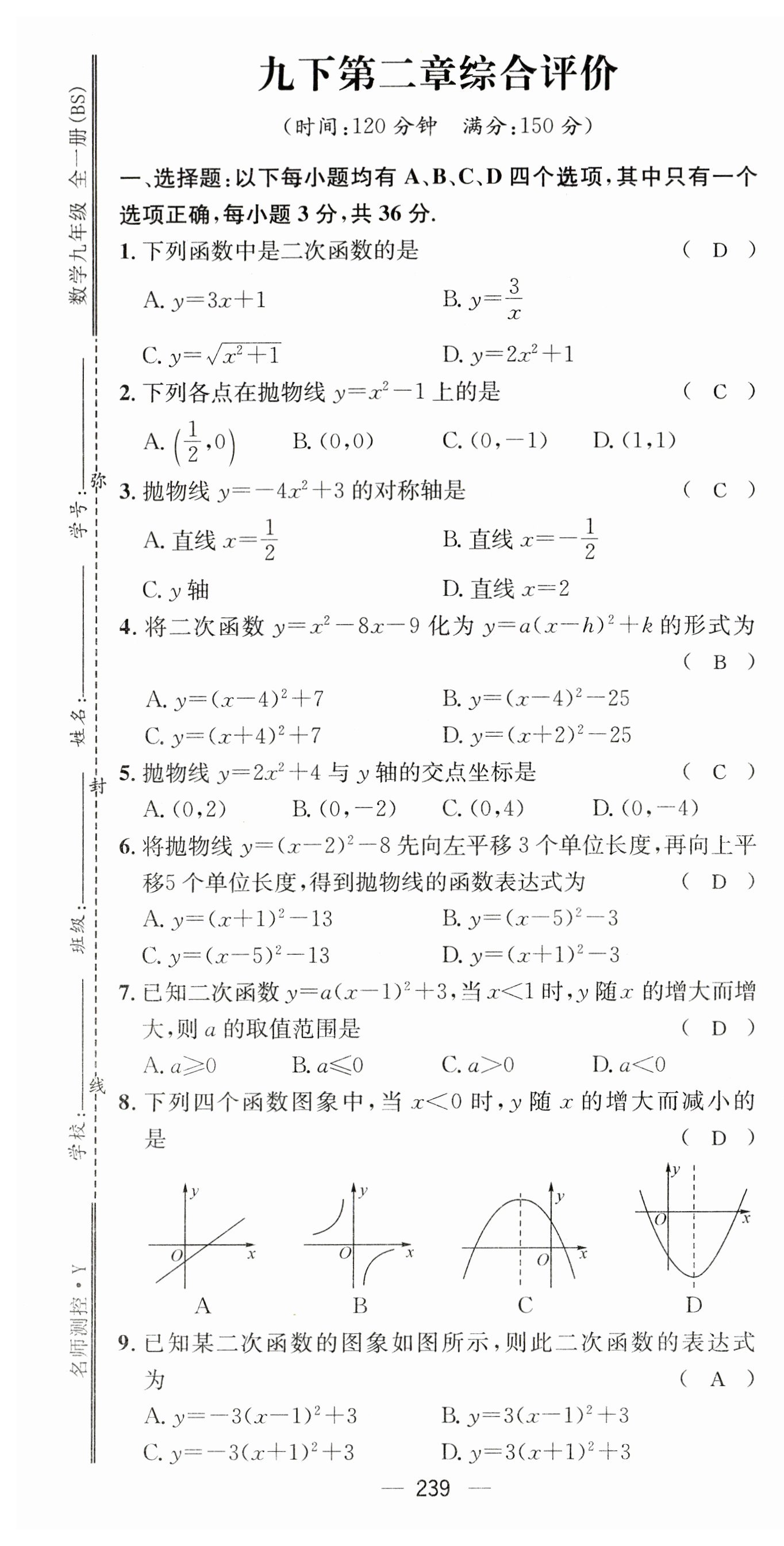 注:目前有些书本章节名称可能整理的还不是很完善,但都是按照顺序排列的,请同学们按照顺序仔细查找。练习册 2023年名师测控九年级数学全一册北师大版贵州专版 答案主要是用来给同学们做完题方便对答案用的,请勿直接抄袭。