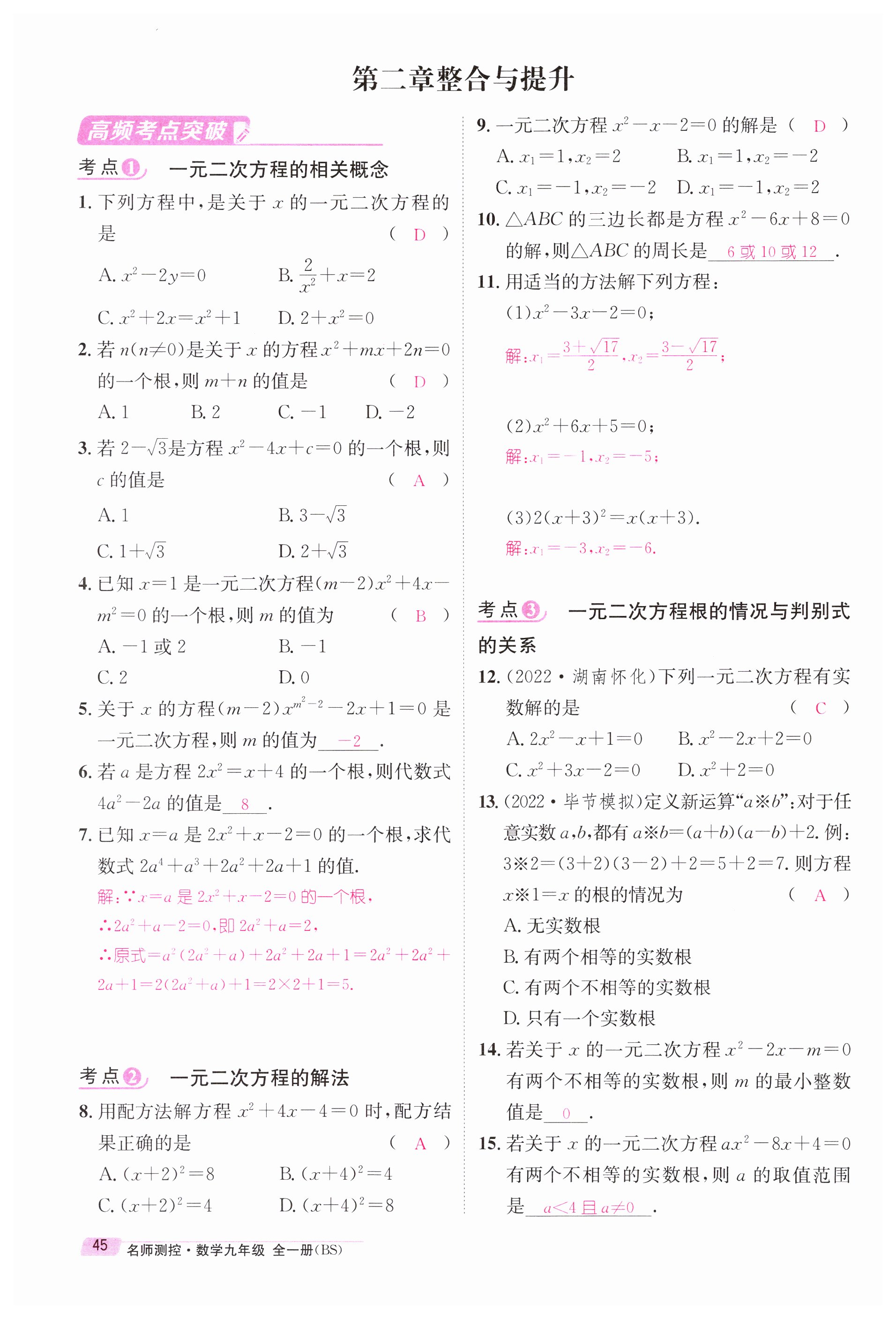 注:目前有些书本章节名称可能整理的还不是很完善,但都是按照顺序排列的,请同学们按照顺序仔细查找。练习册 2023年名师测控九年级数学全一册北师大版贵州专版 答案主要是用来给同学们做完题方便对答案用的,请勿直接抄袭。