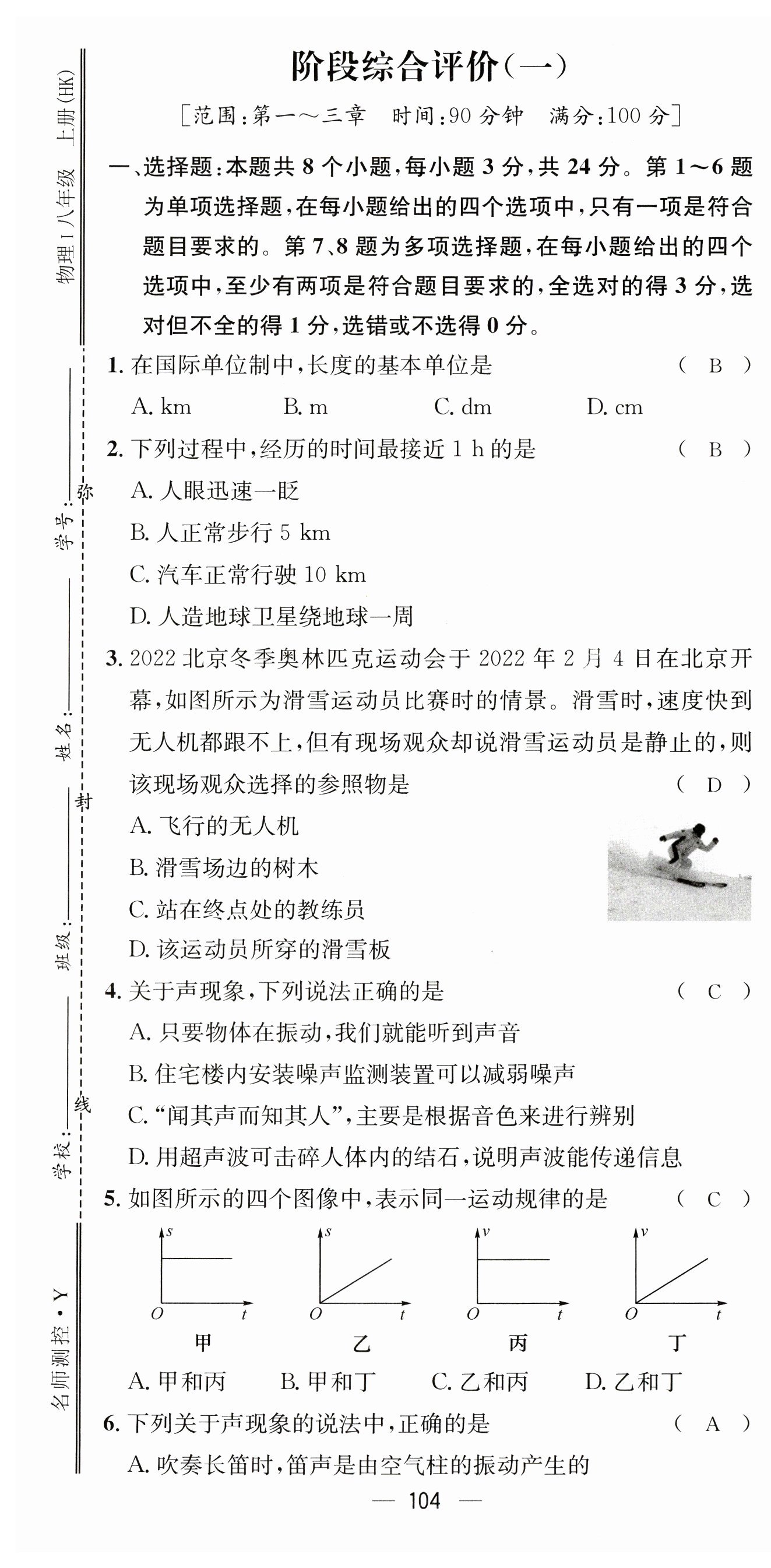 注:目前有些书本章节名称可能整理的还不是很完善,但都是按照顺序排列的,请同学们按照顺序仔细查找。练习册 2023年名师测控八年级物理上册沪科版贵州专版 答案主要是用来给同学们做完题方便对答案用的,请勿直接抄袭。