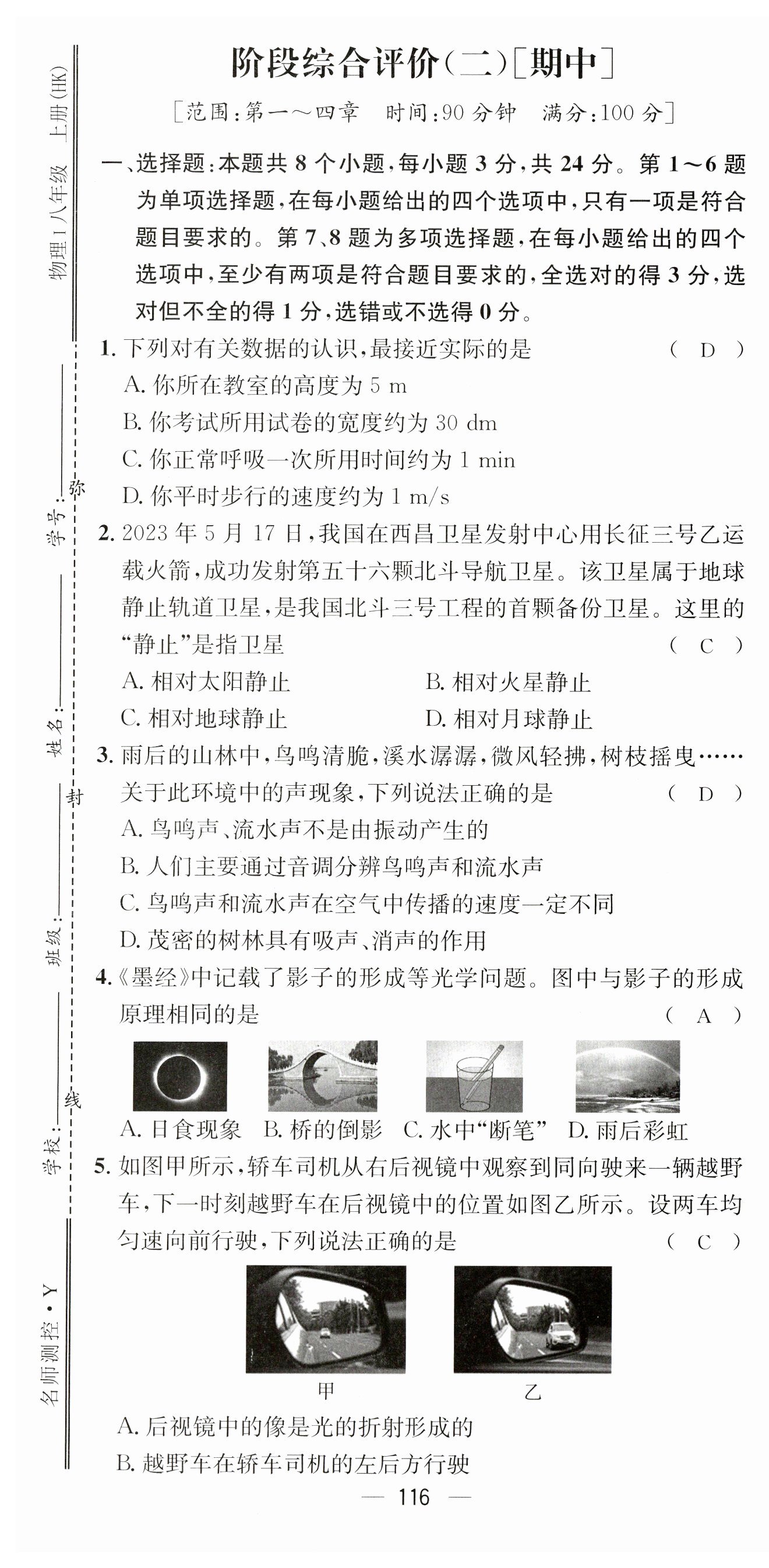 2023年名师测控八年级物理上册沪科版贵州专版
