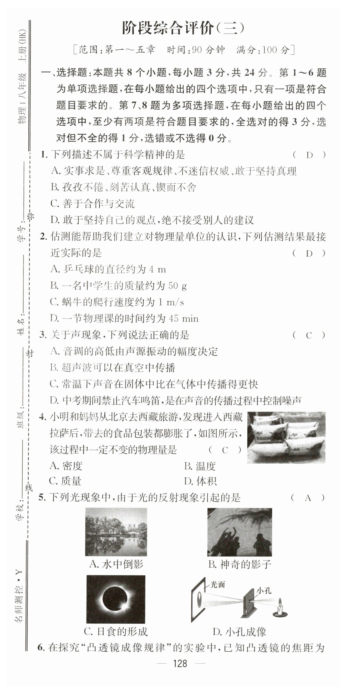 2023年名师测控八年级物理上册沪科版贵州专版