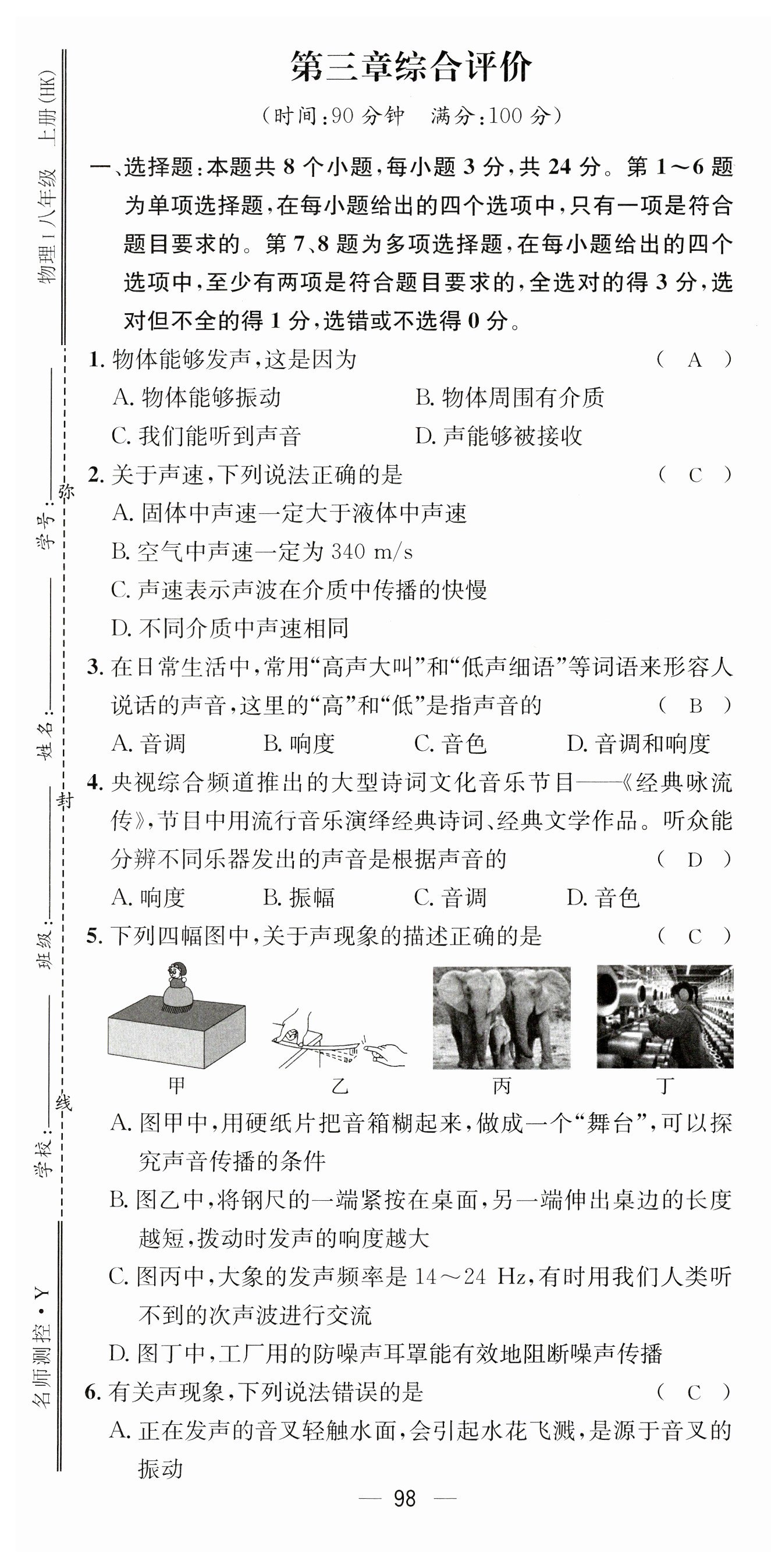 2023年名师测控八年级物理上册沪科版贵州专版