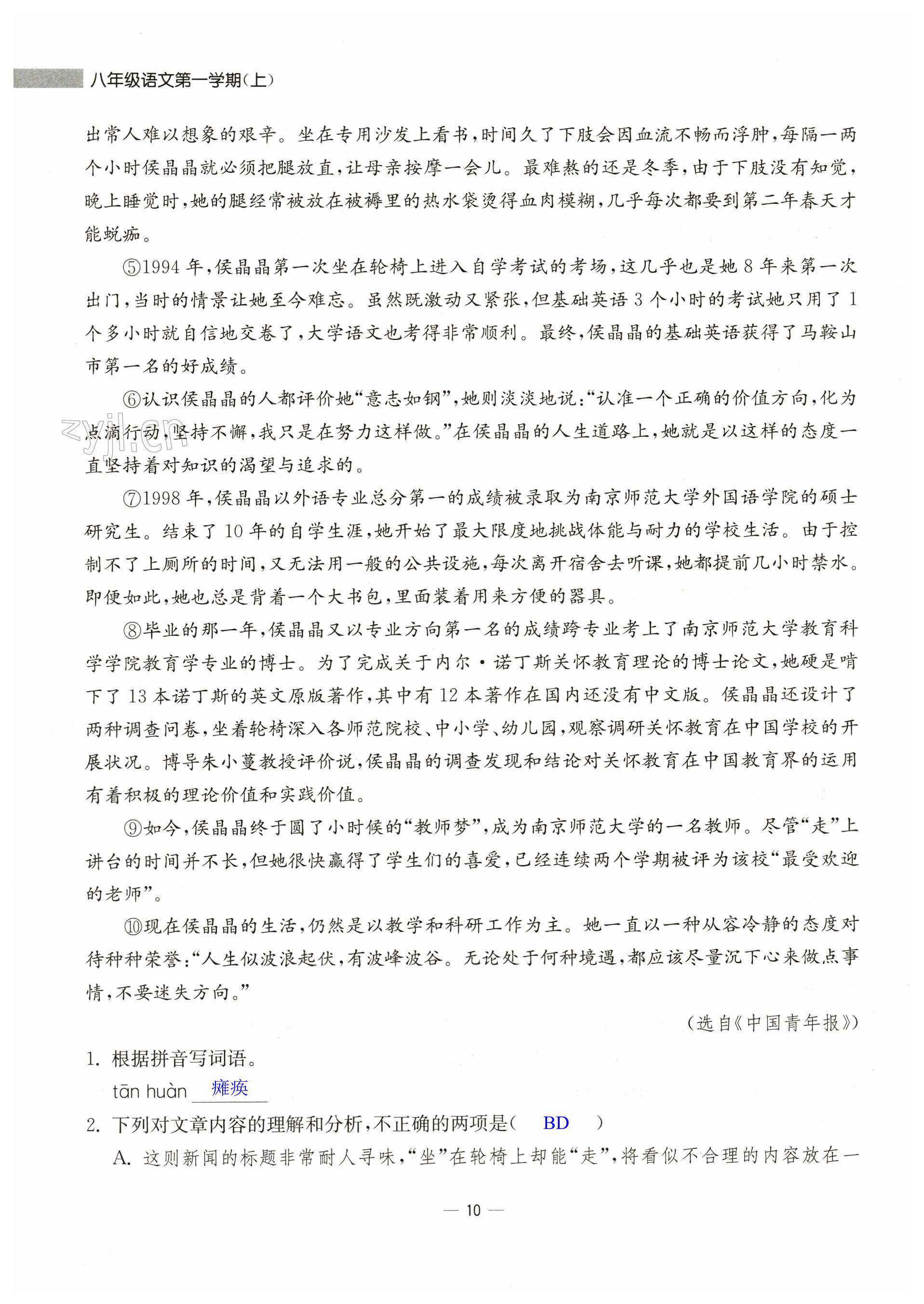 注:目前有些书本章节名称可能整理的还不是很完善,但都是按照顺序排列的,请同学们按照顺序仔细查找。练习册 2023年中学生世界八年级语文第一学期人教版 答案主要是用来给同学们做完题方便对答案用的,请勿直接抄袭。