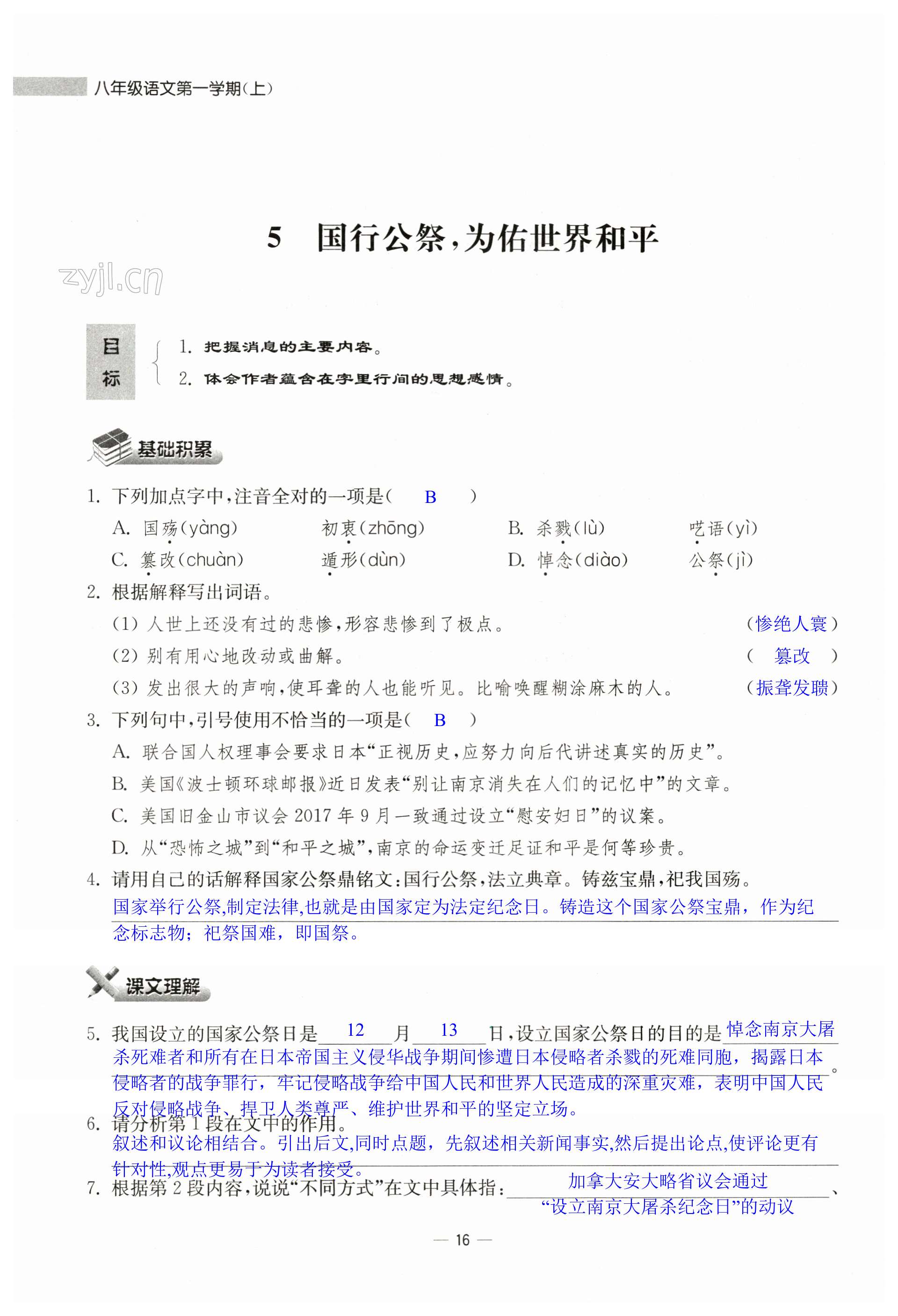 注:目前有些书本章节名称可能整理的还不是很完善,但都是按照顺序排列的,请同学们按照顺序仔细查找。练习册 2023年中学生世界八年级语文第一学期人教版 答案主要是用来给同学们做完题方便对答案用的,请勿直接抄袭。