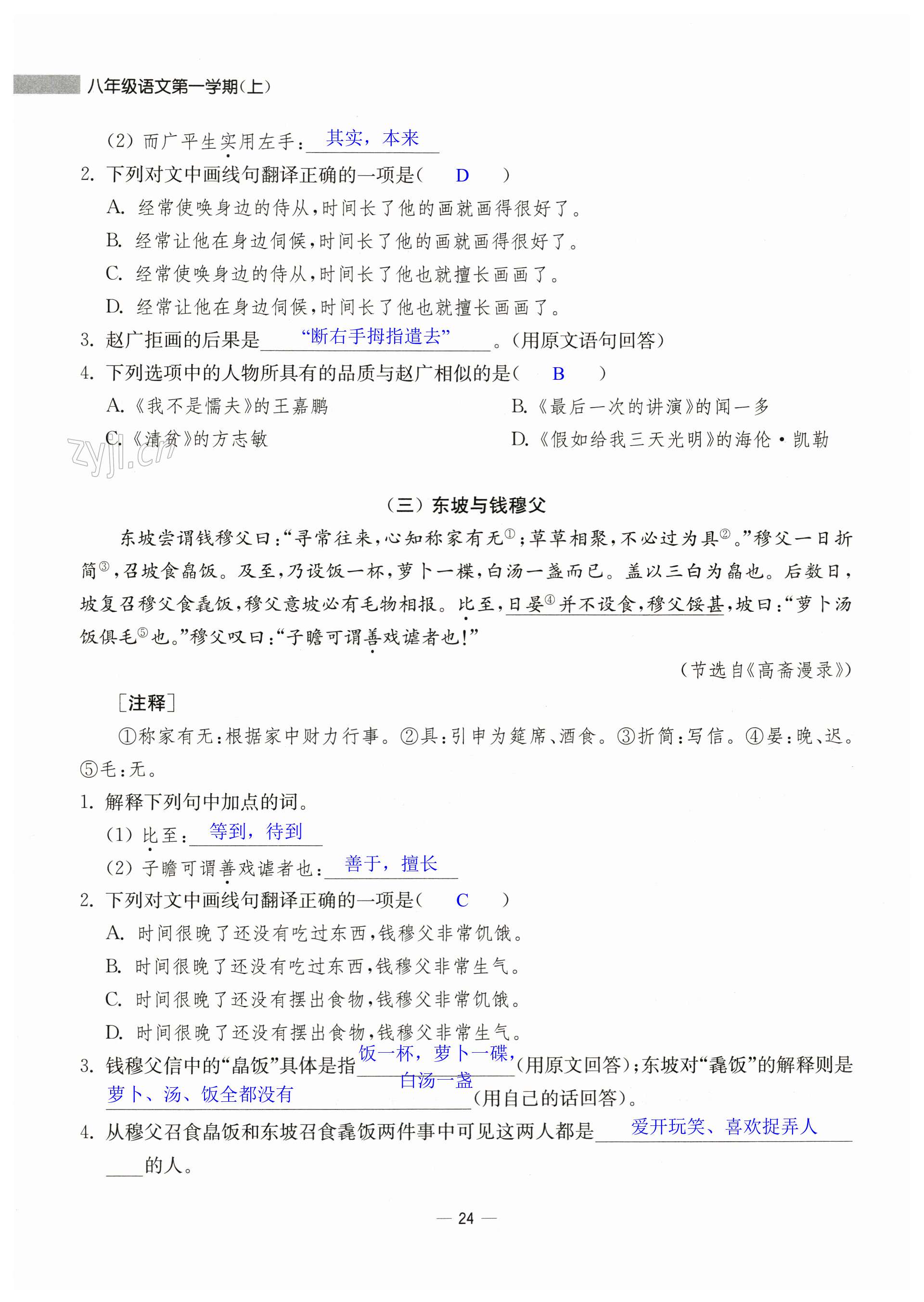注:目前有些书本章节名称可能整理的还不是很完善,但都是按照顺序排列的,请同学们按照顺序仔细查找。练习册 2023年中学生世界八年级语文第一学期人教版 答案主要是用来给同学们做完题方便对答案用的,请勿直接抄袭。