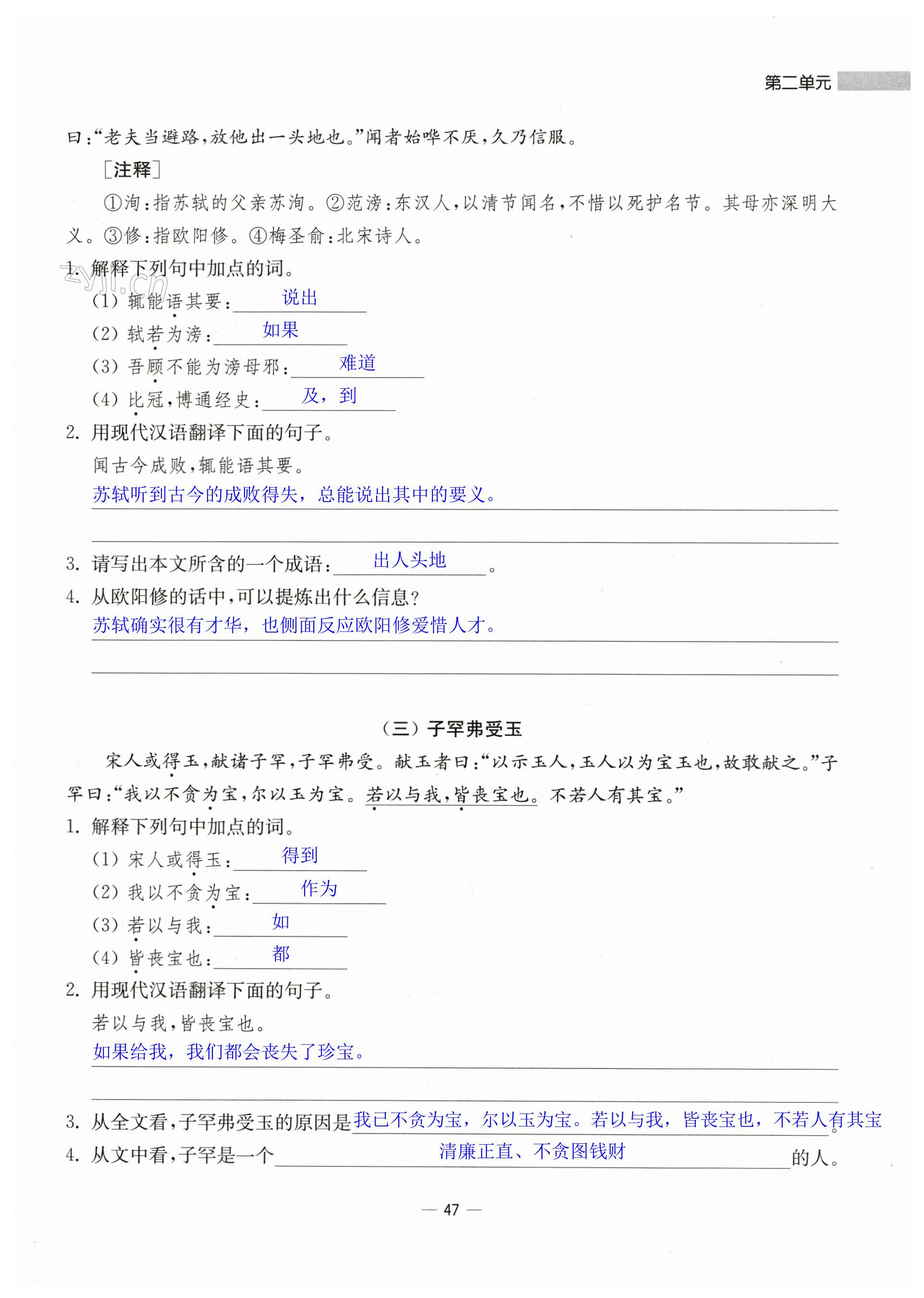 注:目前有些书本章节名称可能整理的还不是很完善,但都是按照顺序排列的,请同学们按照顺序仔细查找。练习册 2023年中学生世界八年级语文第一学期人教版 答案主要是用来给同学们做完题方便对答案用的,请勿直接抄袭。