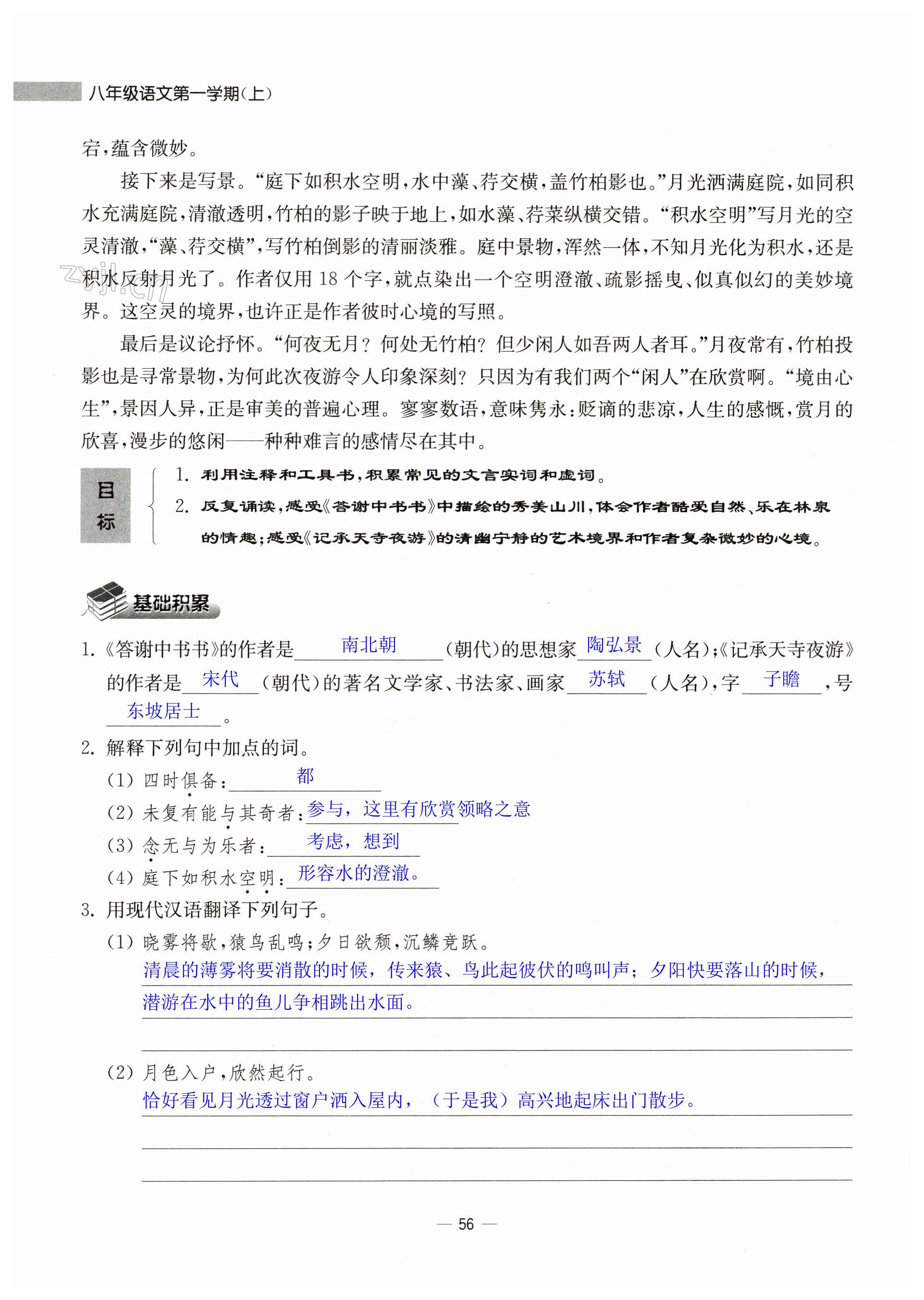 注:目前有些书本章节名称可能整理的还不是很完善,但都是按照顺序排列的,请同学们按照顺序仔细查找。练习册 2023年中学生世界八年级语文第一学期人教版 答案主要是用来给同学们做完题方便对答案用的,请勿直接抄袭。