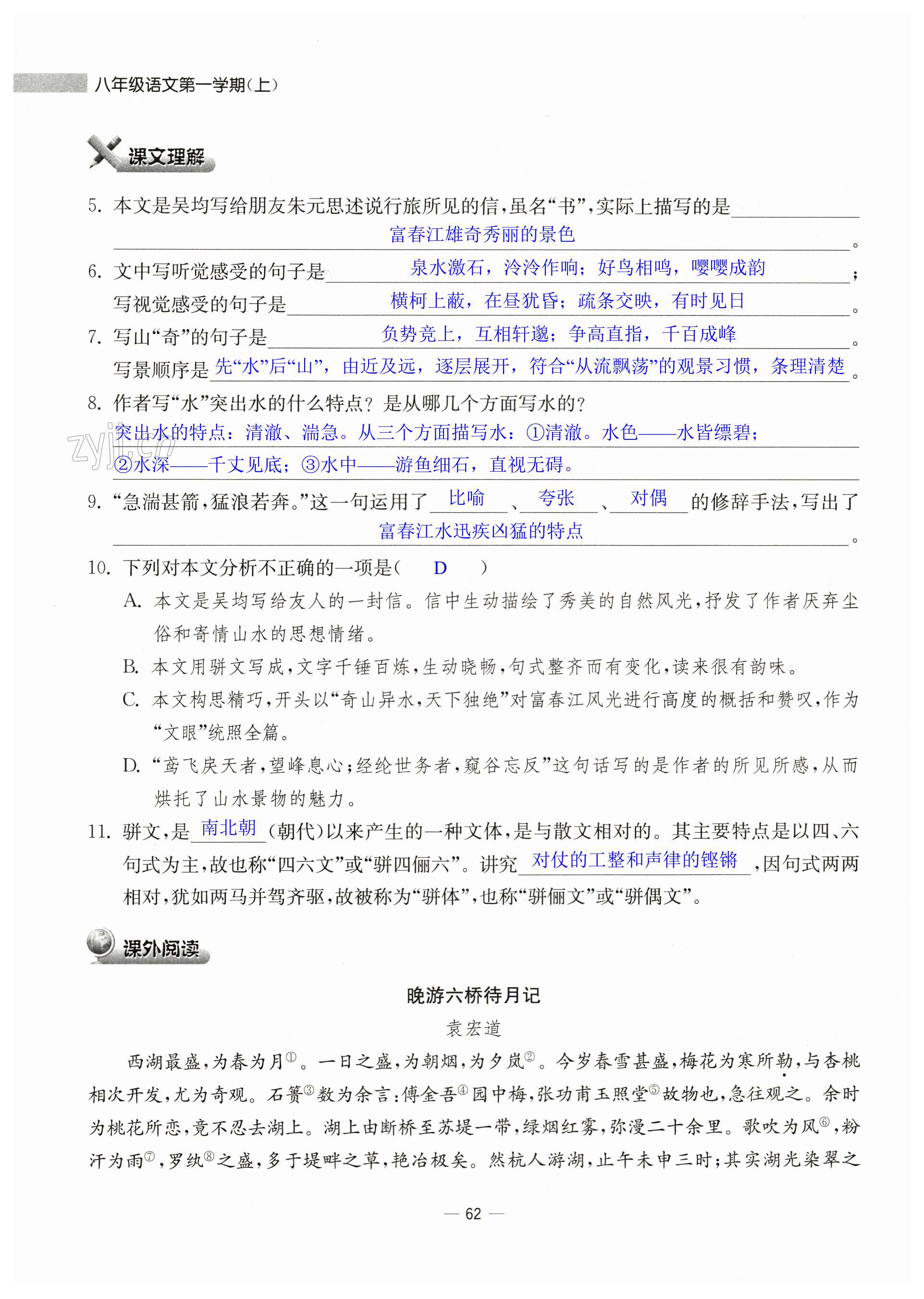 注:目前有些书本章节名称可能整理的还不是很完善,但都是按照顺序排列的,请同学们按照顺序仔细查找。练习册 2023年中学生世界八年级语文第一学期人教版 答案主要是用来给同学们做完题方便对答案用的,请勿直接抄袭。