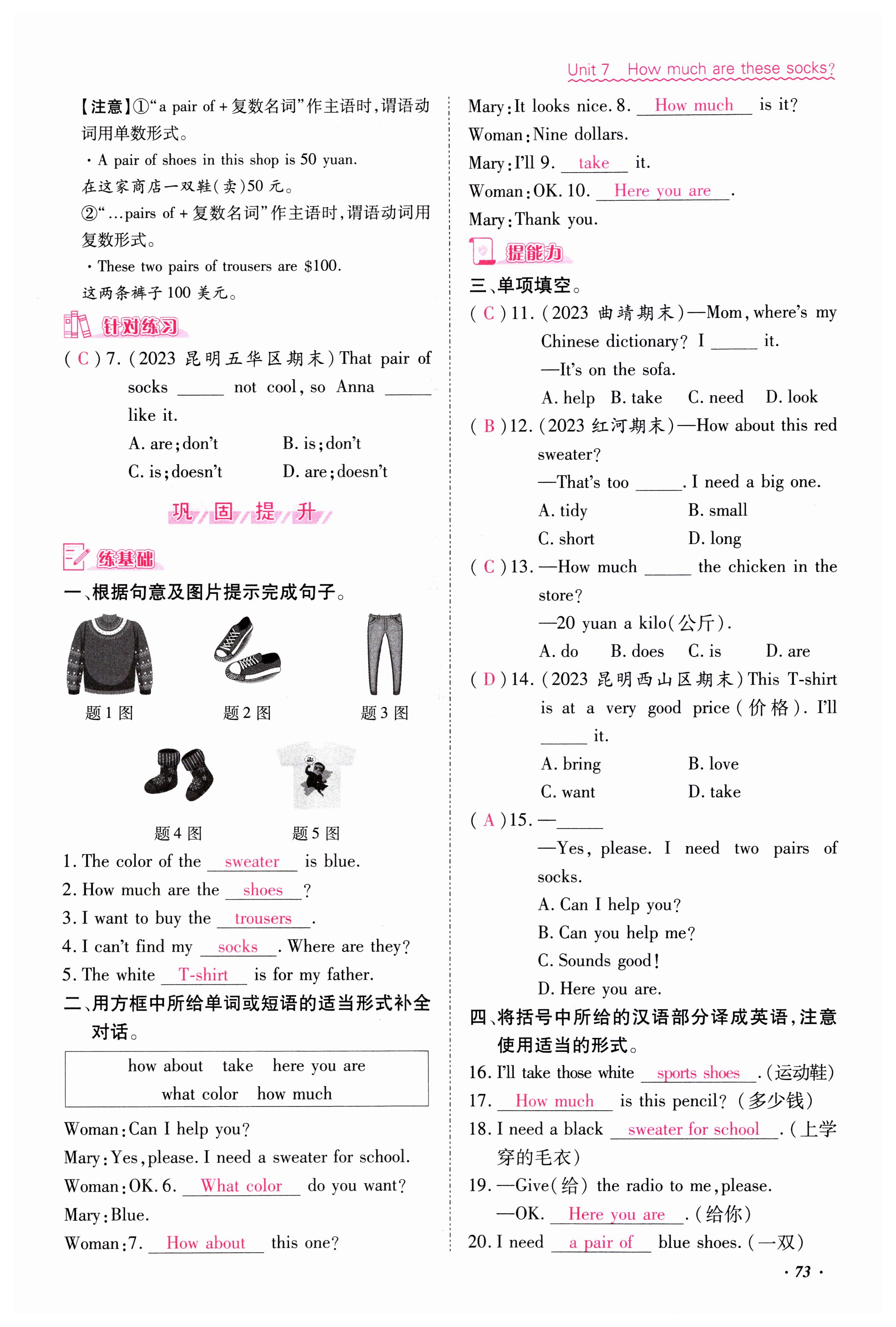 2023年本土攻略七年级英语上册人教版