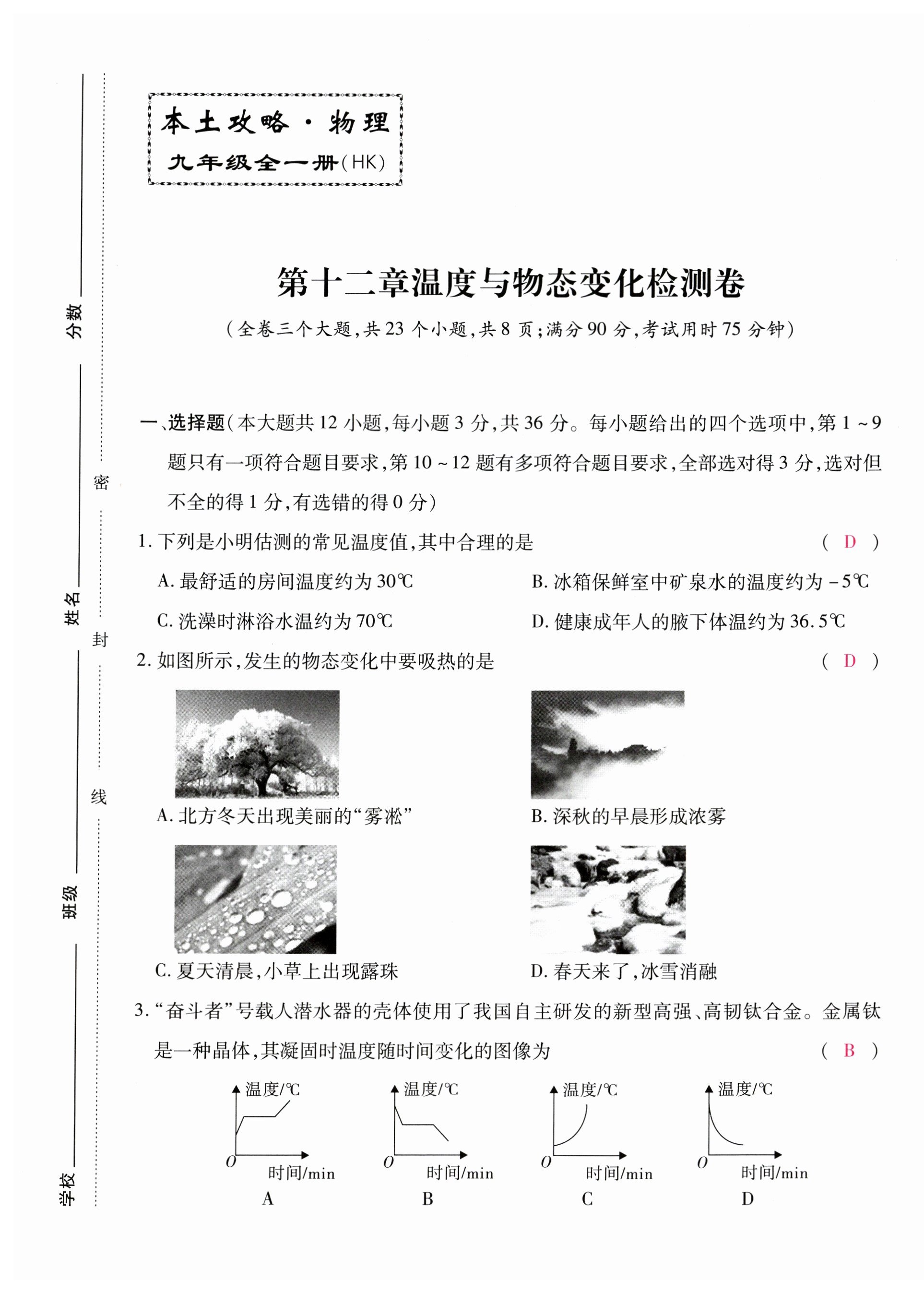2023年本土攻略九年级物理全一册沪科版