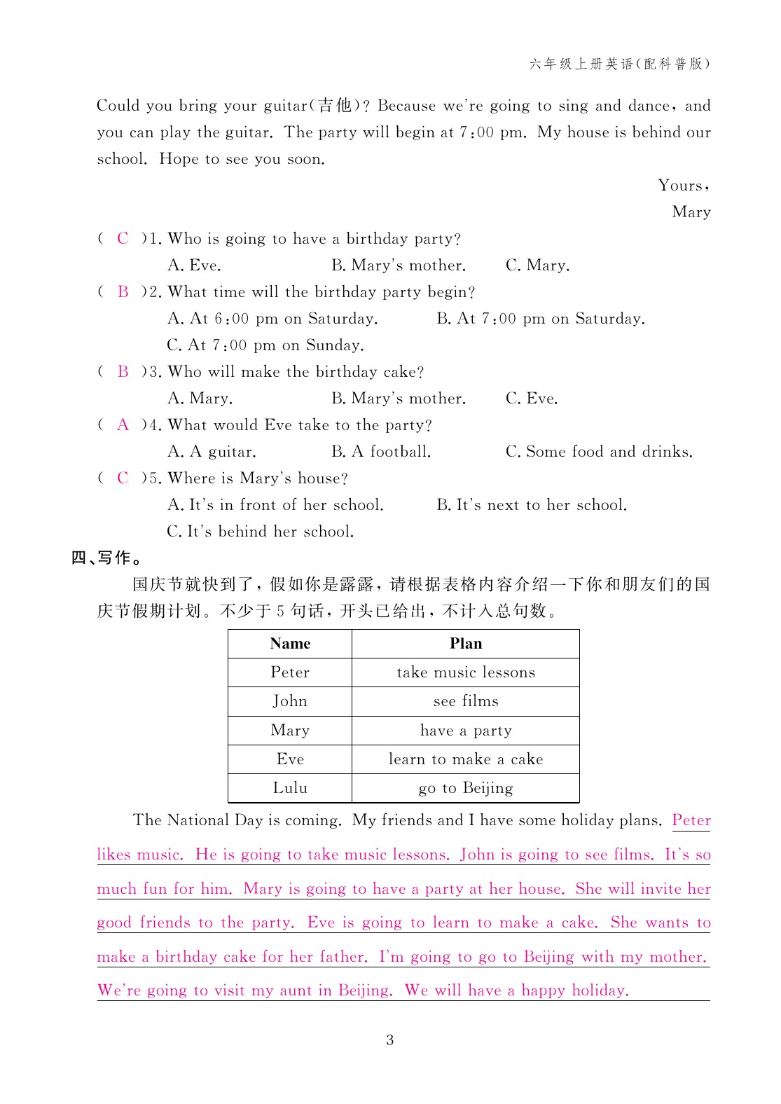 注:目前有些书本章节名称可能整理的还不是很完善,但都是按照顺序排列的,请同学们按照顺序仔细查找。练习册 2023年作业本江西教育出版社六年级英语上册科普版 答案主要是用来给同学们做完题方便对答案用的,请勿直接抄袭。