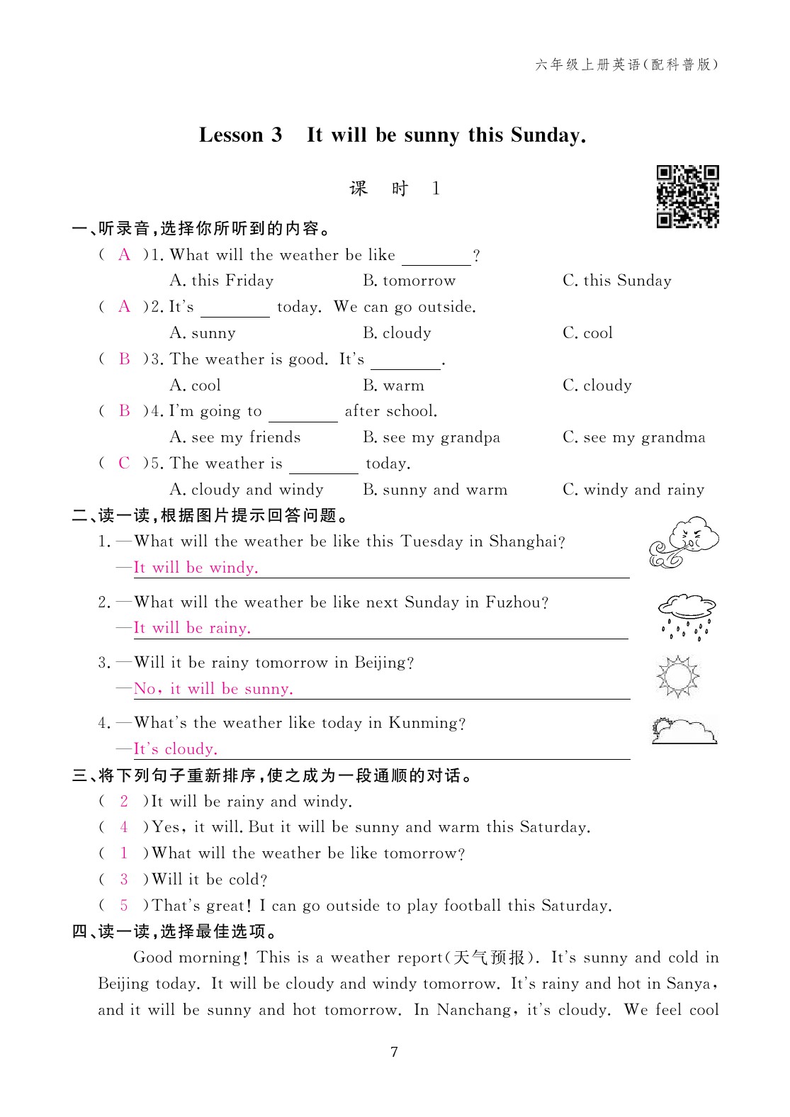 注:目前有些书本章节名称可能整理的还不是很完善,但都是按照顺序排列的,请同学们按照顺序仔细查找。练习册 2023年作业本江西教育出版社六年级英语上册科普版 答案主要是用来给同学们做完题方便对答案用的,请勿直接抄袭。
