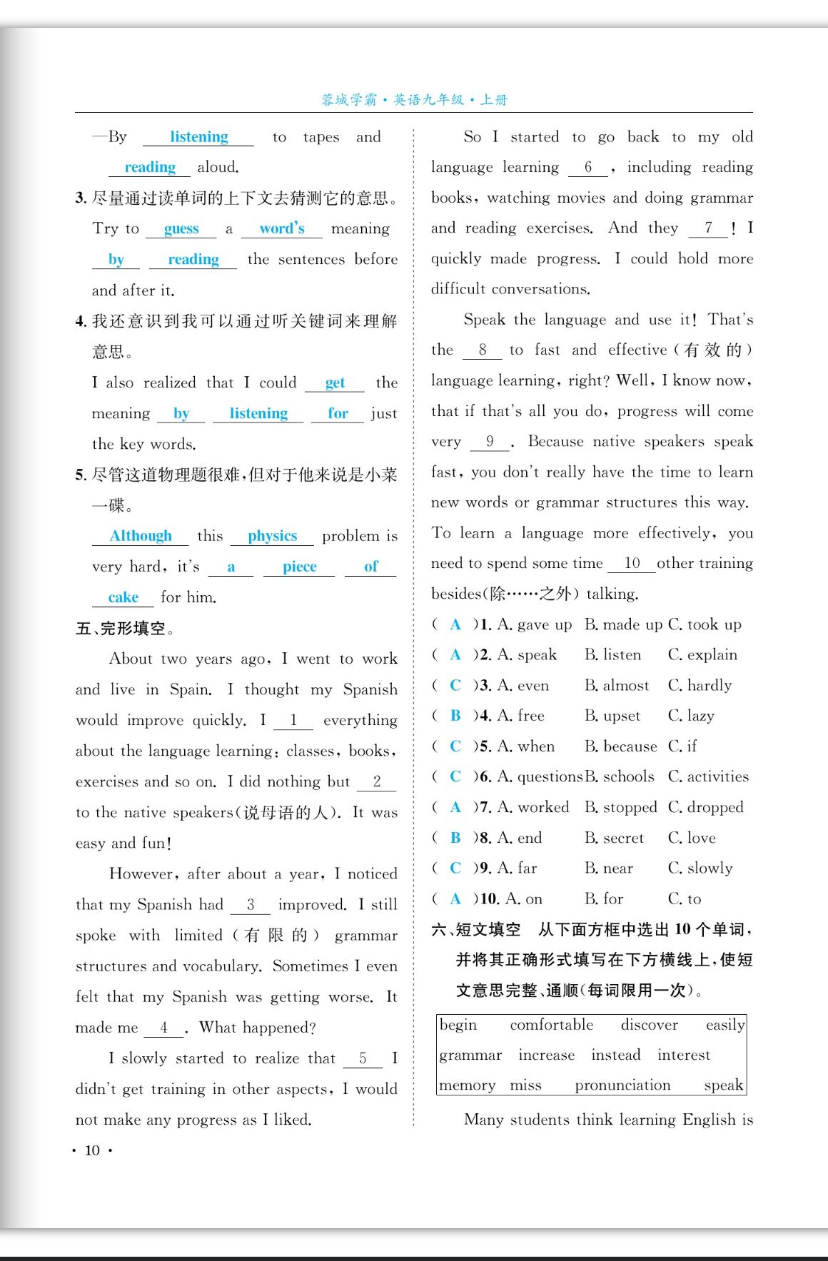 注:目前有些书本章节名称可能整理的还不是很完善,但都是按照顺序排列的,请同学们按照顺序仔细查找。练习册 2023年蓉城学霸九年级英语上册人教版成都专版 答案主要是用来给同学们做完题方便对答案用的,请勿直接抄袭。
