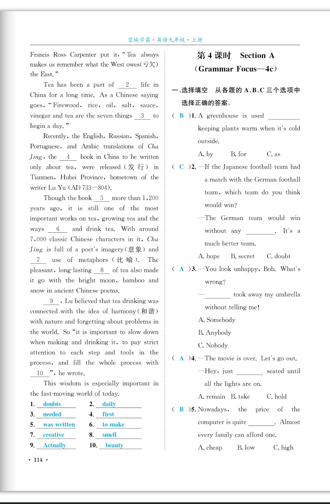 注:目前有些书本章节名称可能整理的还不是很完善,但都是按照顺序排列的,请同学们按照顺序仔细查找。练习册 2023年蓉城学霸九年级英语上册人教版成都专版 答案主要是用来给同学们做完题方便对答案用的,请勿直接抄袭。