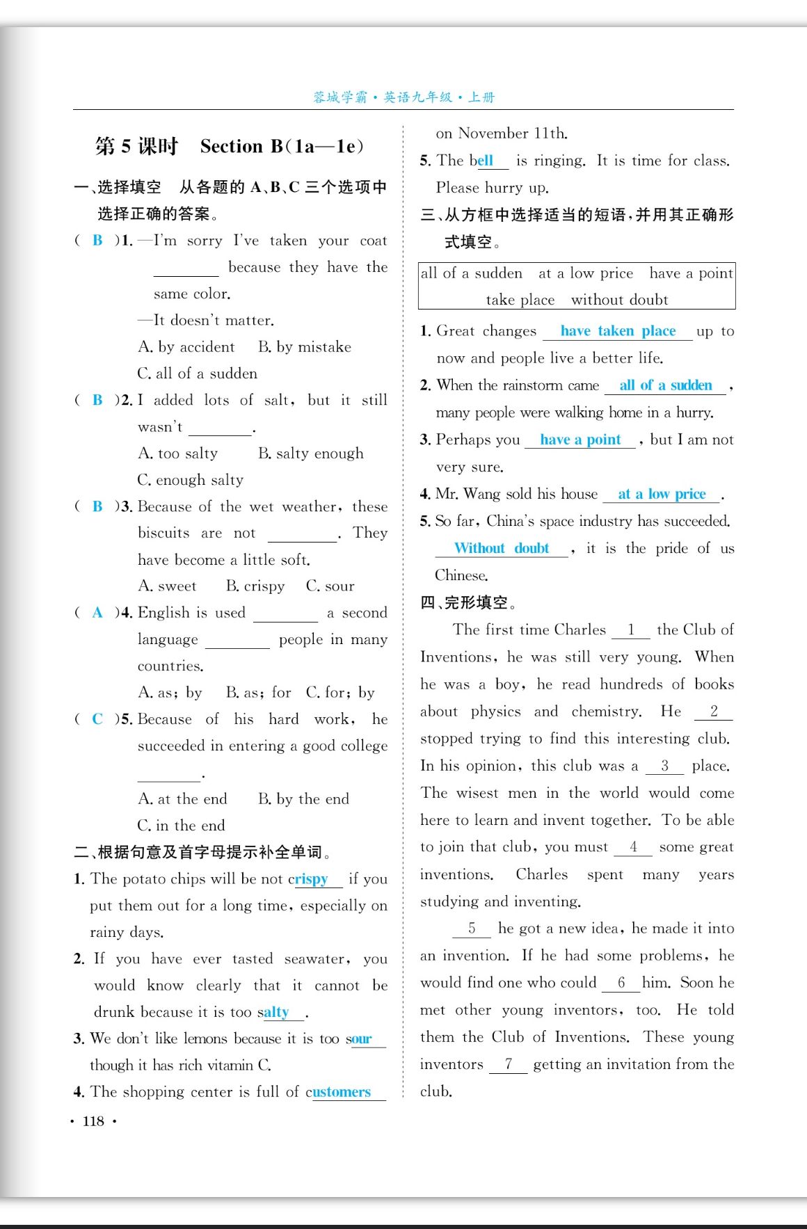注:目前有些书本章节名称可能整理的还不是很完善,但都是按照顺序排列的,请同学们按照顺序仔细查找。练习册 2023年蓉城学霸九年级英语上册人教版成都专版 答案主要是用来给同学们做完题方便对答案用的,请勿直接抄袭。