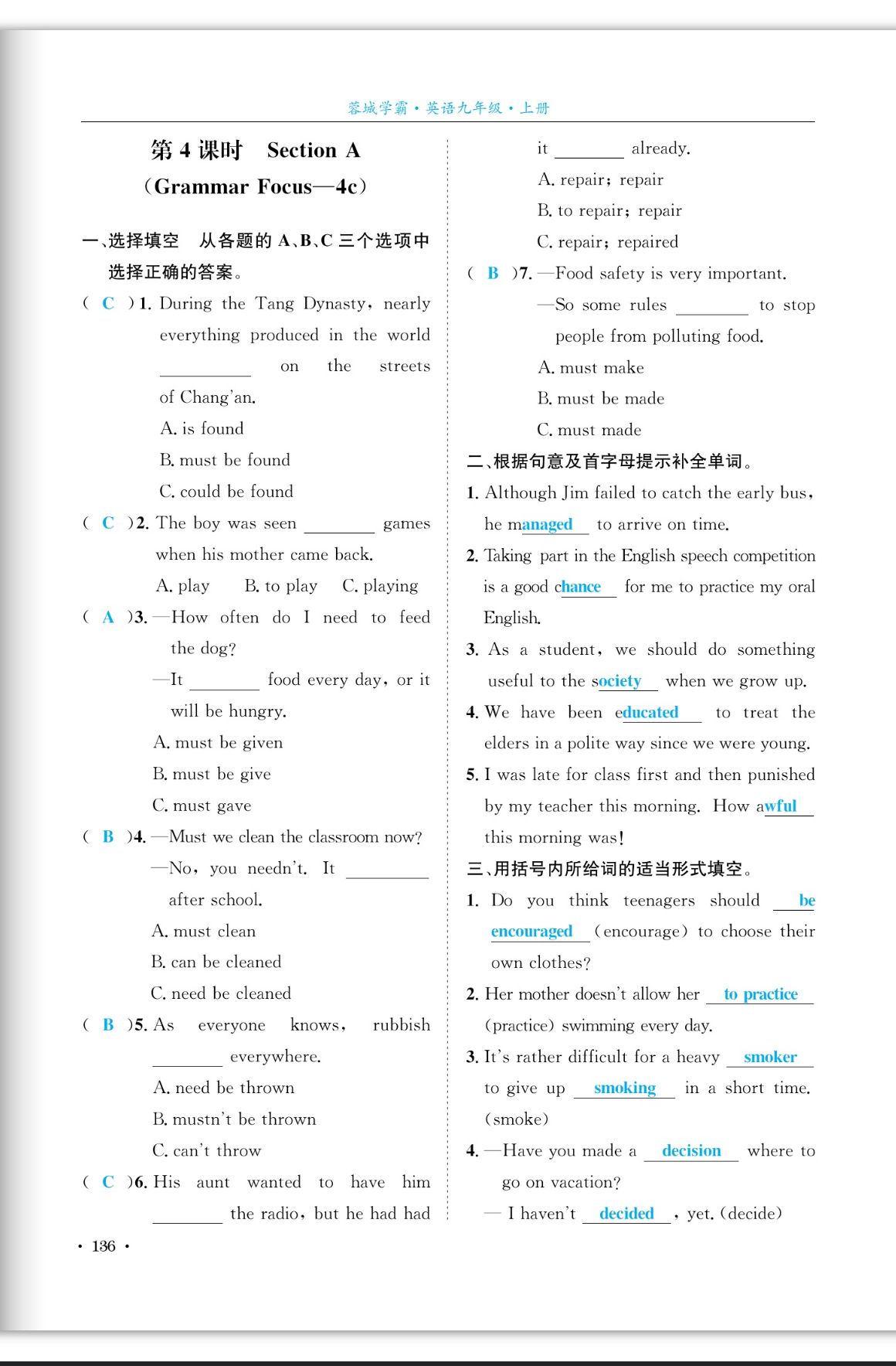 注:目前有些书本章节名称可能整理的还不是很完善,但都是按照顺序排列的,请同学们按照顺序仔细查找。练习册 2023年蓉城学霸九年级英语上册人教版成都专版 答案主要是用来给同学们做完题方便对答案用的,请勿直接抄袭。