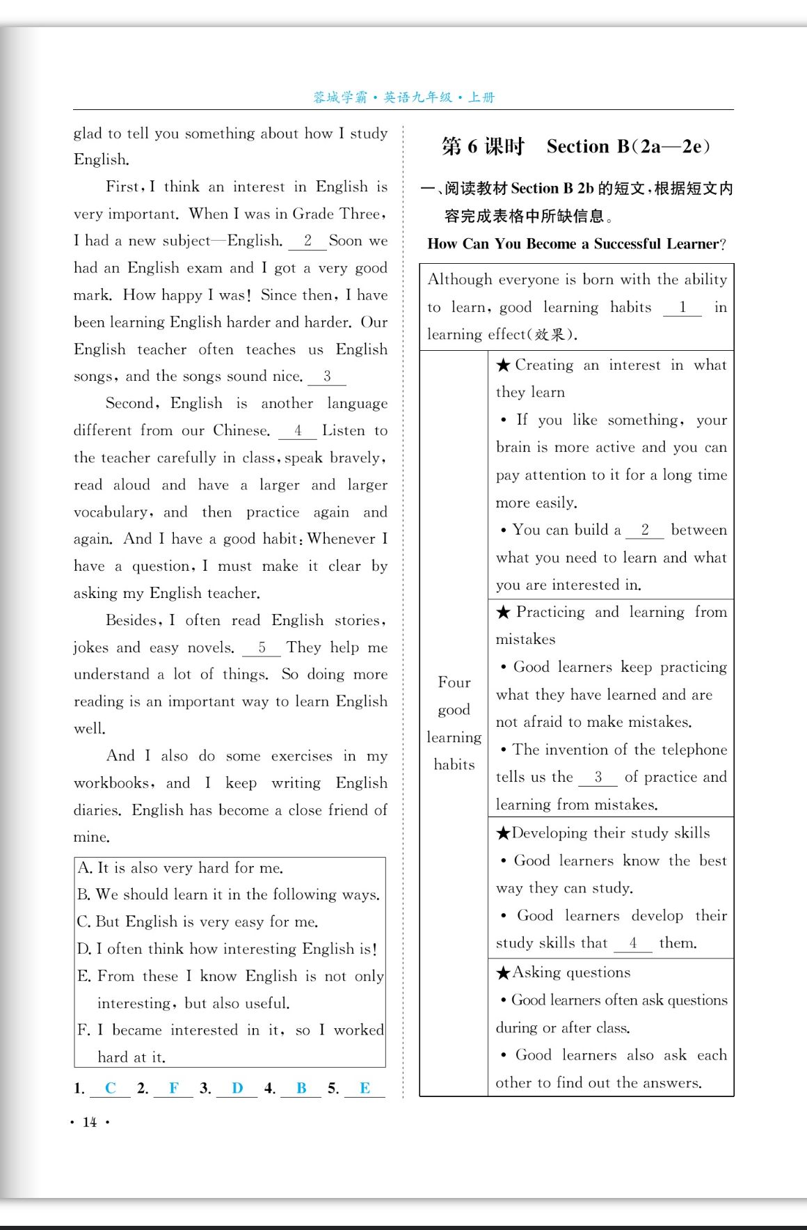注:目前有些书本章节名称可能整理的还不是很完善,但都是按照顺序排列的,请同学们按照顺序仔细查找。练习册 2023年蓉城学霸九年级英语上册人教版成都专版 答案主要是用来给同学们做完题方便对答案用的,请勿直接抄袭。