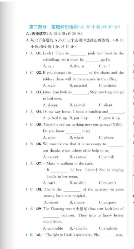 注:目前有些书本章节名称可能整理的还不是很完善,但都是按照顺序排列的,请同学们按照顺序仔细查找。练习册 2023年蓉城学霸九年级英语上册人教版成都专版 答案主要是用来给同学们做完题方便对答案用的,请勿直接抄袭。