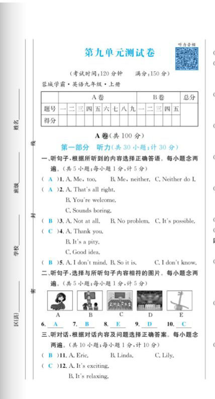 注:目前有些书本章节名称可能整理的还不是很完善,但都是按照顺序排列的,请同学们按照顺序仔细查找。练习册 2023年蓉城学霸九年级英语上册人教版成都专版 答案主要是用来给同学们做完题方便对答案用的,请勿直接抄袭。
