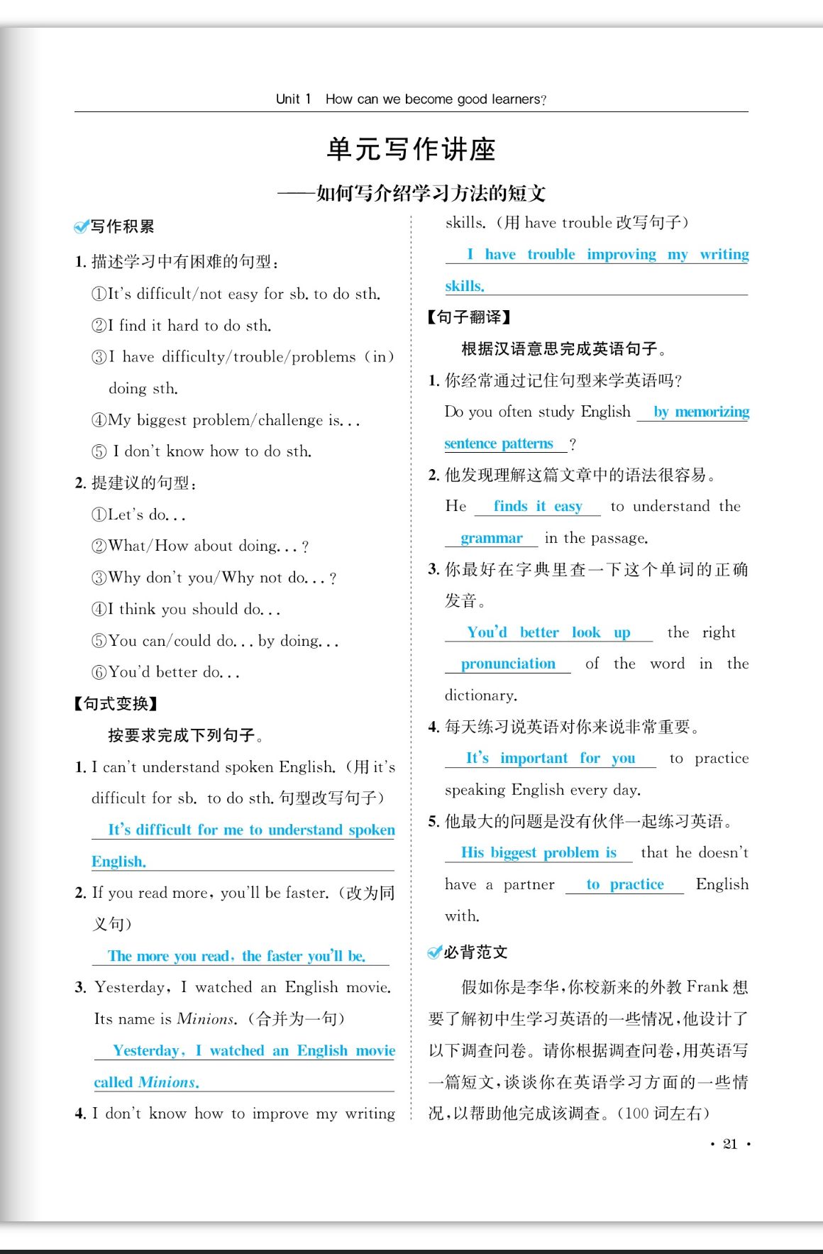 注:目前有些书本章节名称可能整理的还不是很完善,但都是按照顺序排列的,请同学们按照顺序仔细查找。练习册 2023年蓉城学霸九年级英语上册人教版成都专版 答案主要是用来给同学们做完题方便对答案用的,请勿直接抄袭。
