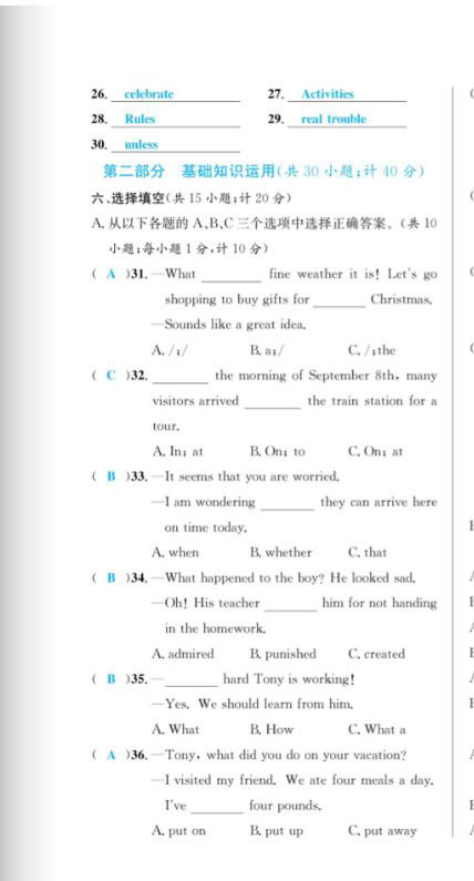 注:目前有些书本章节名称可能整理的还不是很完善,但都是按照顺序排列的,请同学们按照顺序仔细查找。练习册 2023年蓉城学霸九年级英语上册人教版成都专版 答案主要是用来给同学们做完题方便对答案用的,请勿直接抄袭。