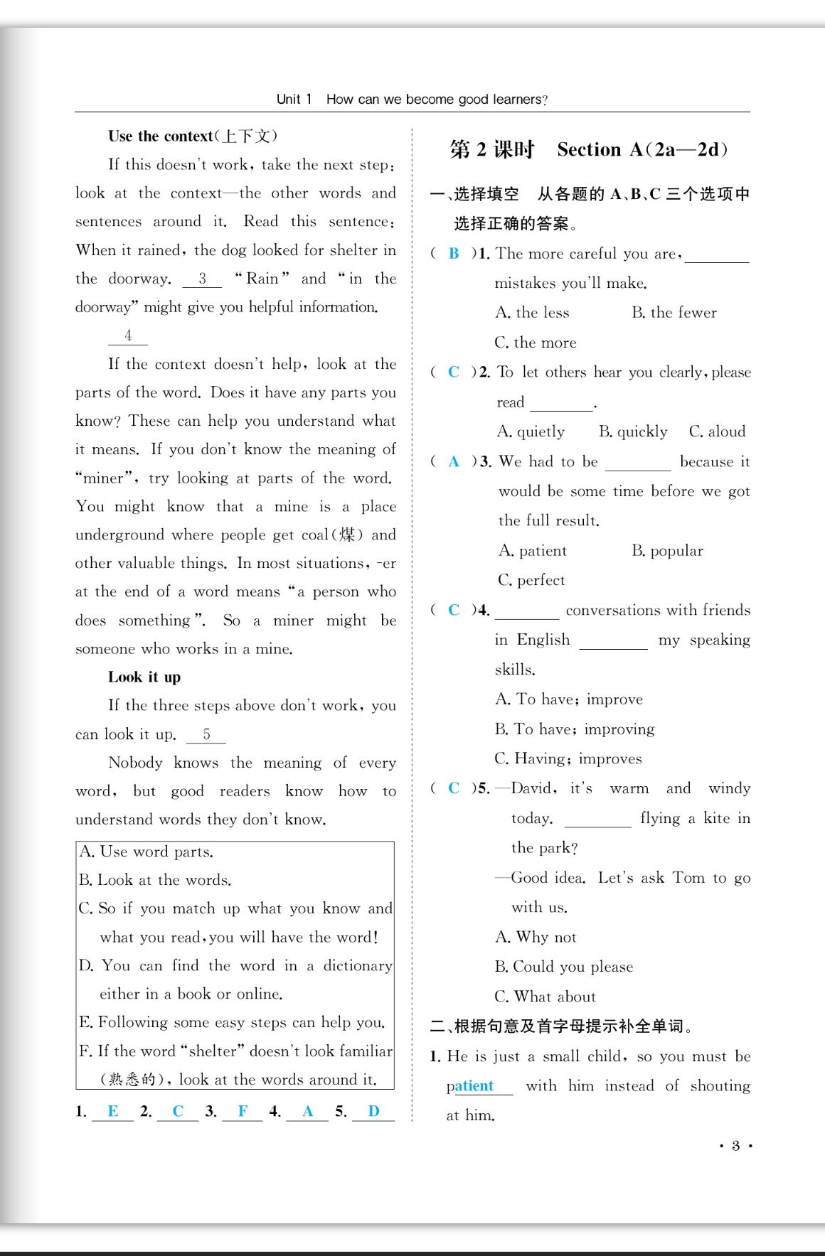 注:目前有些书本章节名称可能整理的还不是很完善,但都是按照顺序排列的,请同学们按照顺序仔细查找。练习册 2023年蓉城学霸九年级英语上册人教版成都专版 答案主要是用来给同学们做完题方便对答案用的,请勿直接抄袭。