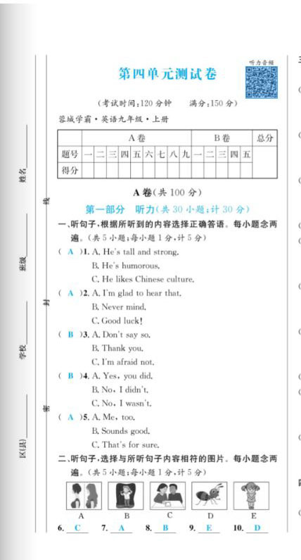 注:目前有些书本章节名称可能整理的还不是很完善,但都是按照顺序排列的,请同学们按照顺序仔细查找。练习册 2023年蓉城学霸九年级英语上册人教版成都专版 答案主要是用来给同学们做完题方便对答案用的,请勿直接抄袭。