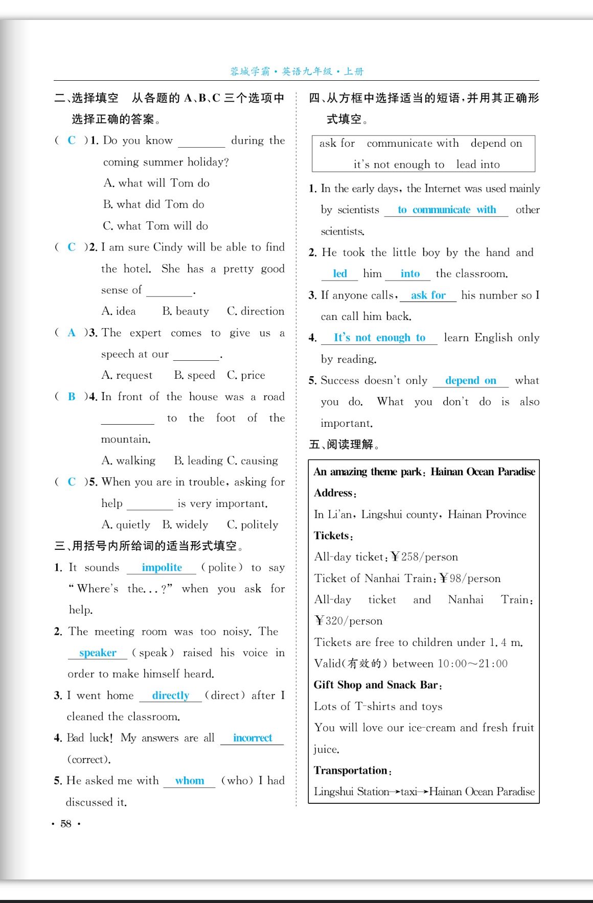 注:目前有些书本章节名称可能整理的还不是很完善,但都是按照顺序排列的,请同学们按照顺序仔细查找。练习册 2023年蓉城学霸九年级英语上册人教版成都专版 答案主要是用来给同学们做完题方便对答案用的,请勿直接抄袭。