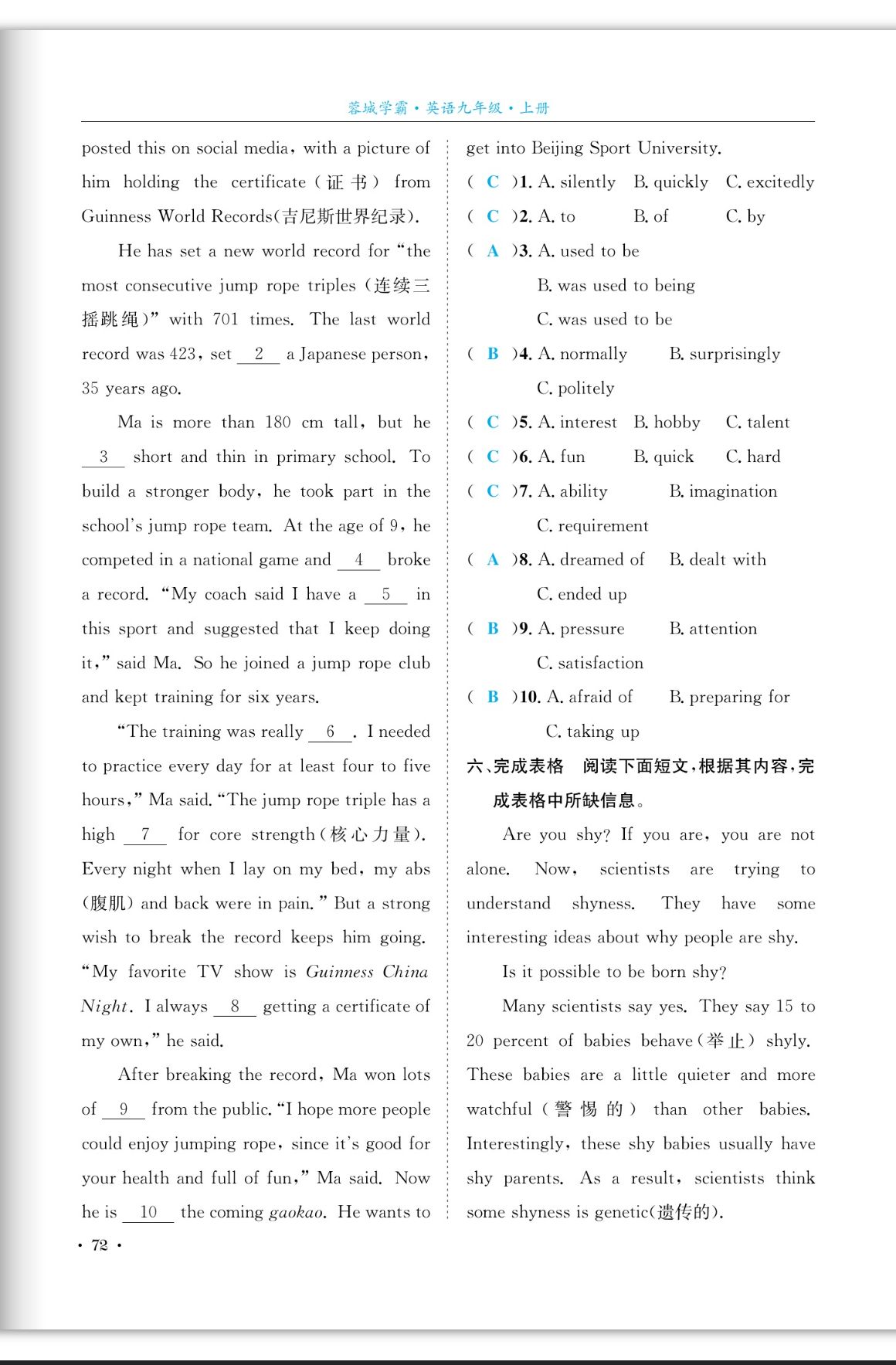 注:目前有些书本章节名称可能整理的还不是很完善,但都是按照顺序排列的,请同学们按照顺序仔细查找。练习册 2023年蓉城学霸九年级英语上册人教版成都专版 答案主要是用来给同学们做完题方便对答案用的,请勿直接抄袭。