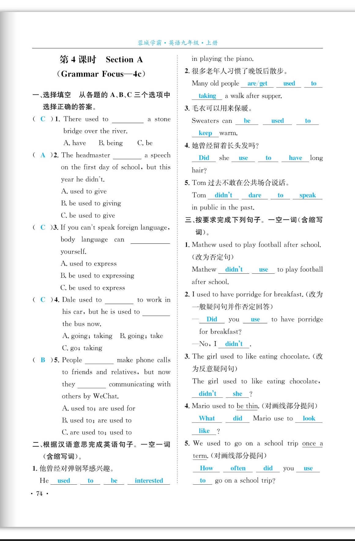 注:目前有些书本章节名称可能整理的还不是很完善,但都是按照顺序排列的,请同学们按照顺序仔细查找。练习册 2023年蓉城学霸九年级英语上册人教版成都专版 答案主要是用来给同学们做完题方便对答案用的,请勿直接抄袭。
