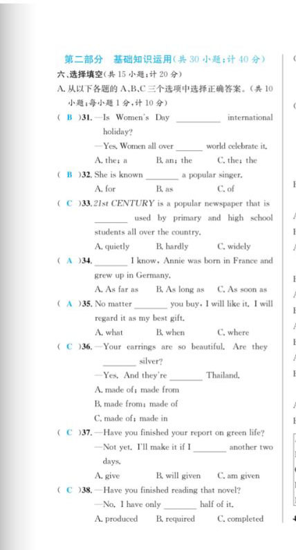 注:目前有些书本章节名称可能整理的还不是很完善,但都是按照顺序排列的,请同学们按照顺序仔细查找。练习册 2023年蓉城学霸九年级英语上册人教版成都专版 答案主要是用来给同学们做完题方便对答案用的,请勿直接抄袭。