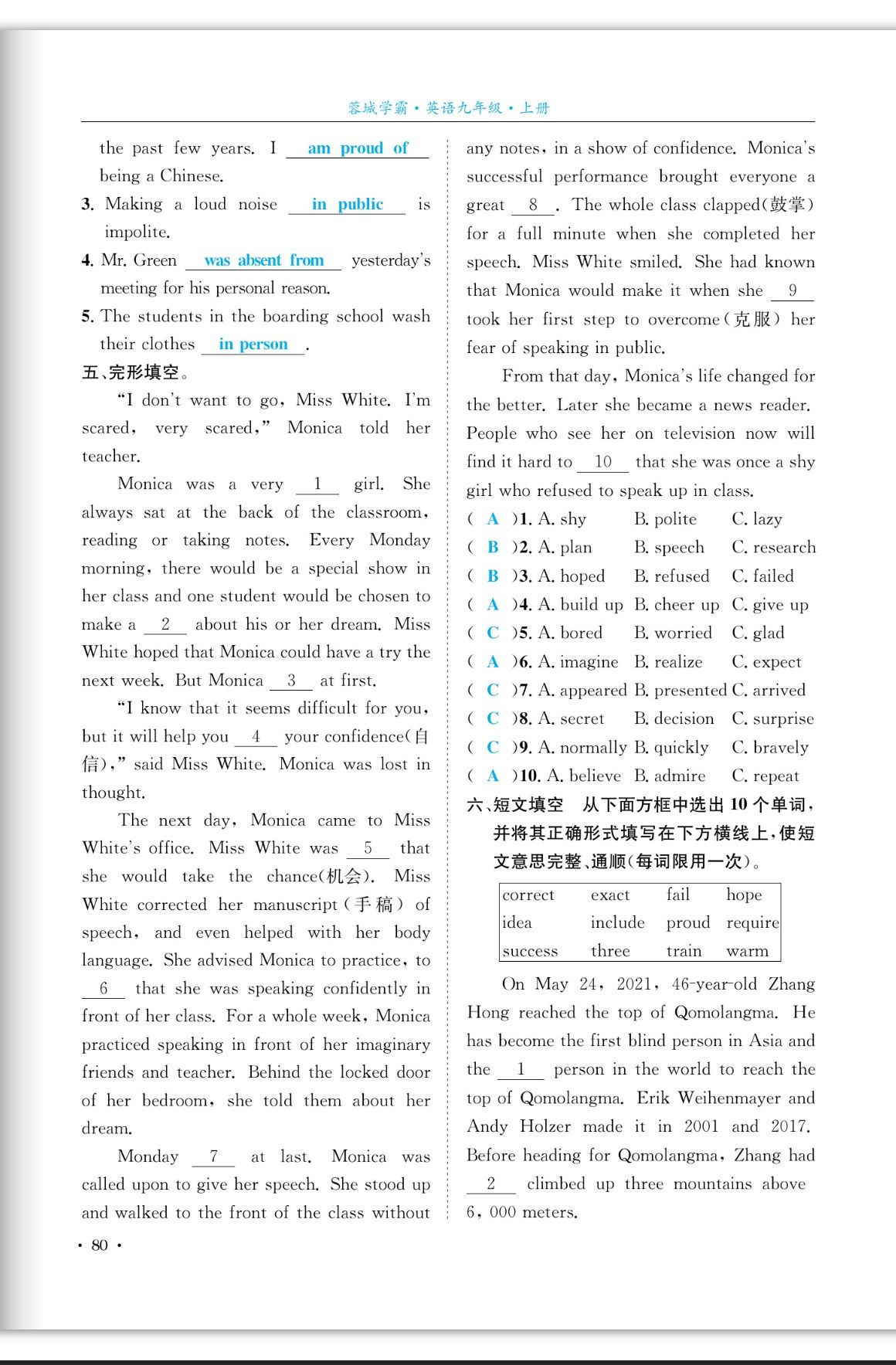 注:目前有些书本章节名称可能整理的还不是很完善,但都是按照顺序排列的,请同学们按照顺序仔细查找。练习册 2023年蓉城学霸九年级英语上册人教版成都专版 答案主要是用来给同学们做完题方便对答案用的,请勿直接抄袭。