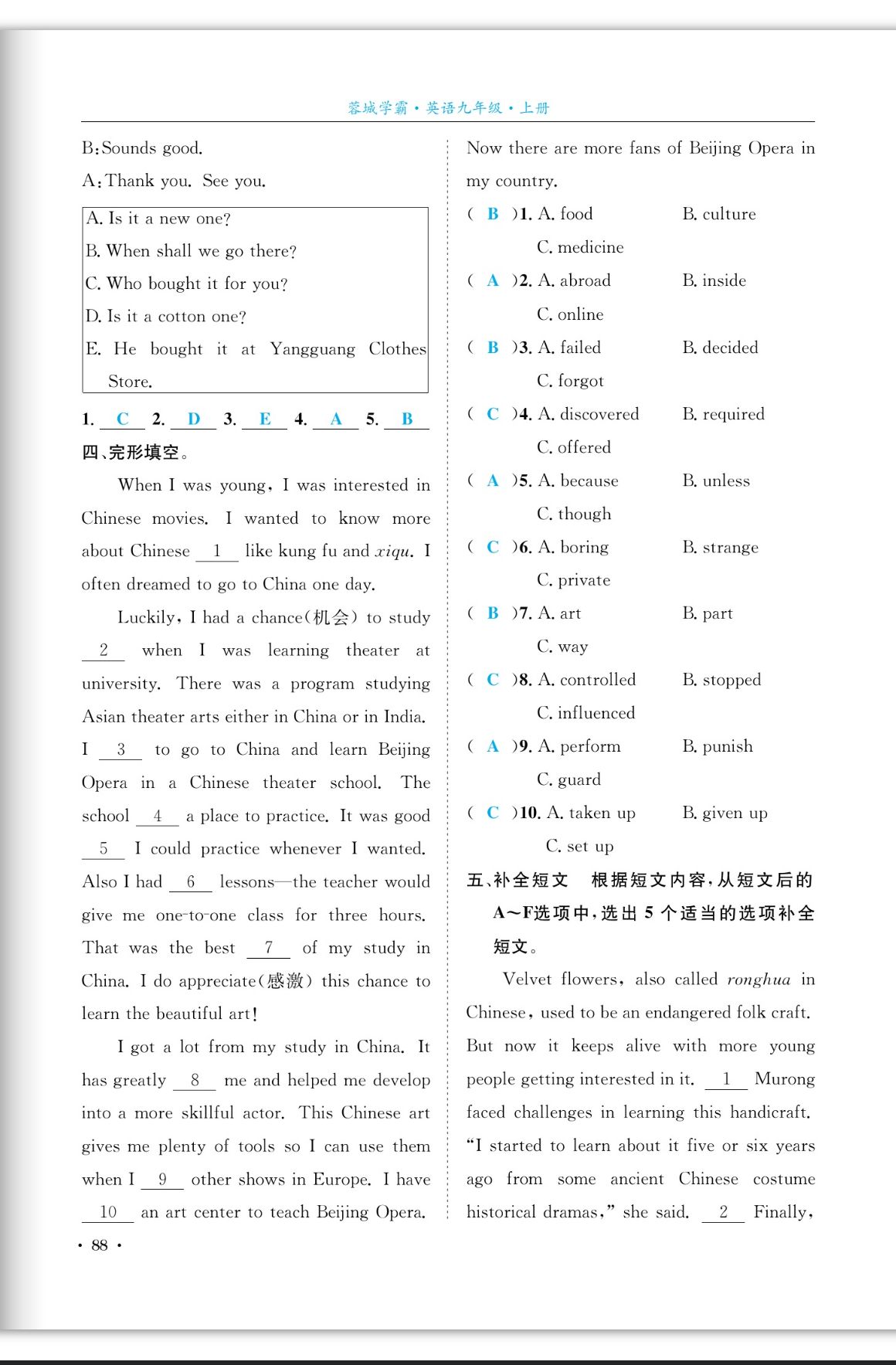注:目前有些书本章节名称可能整理的还不是很完善,但都是按照顺序排列的,请同学们按照顺序仔细查找。练习册 2023年蓉城学霸九年级英语上册人教版成都专版 答案主要是用来给同学们做完题方便对答案用的,请勿直接抄袭。