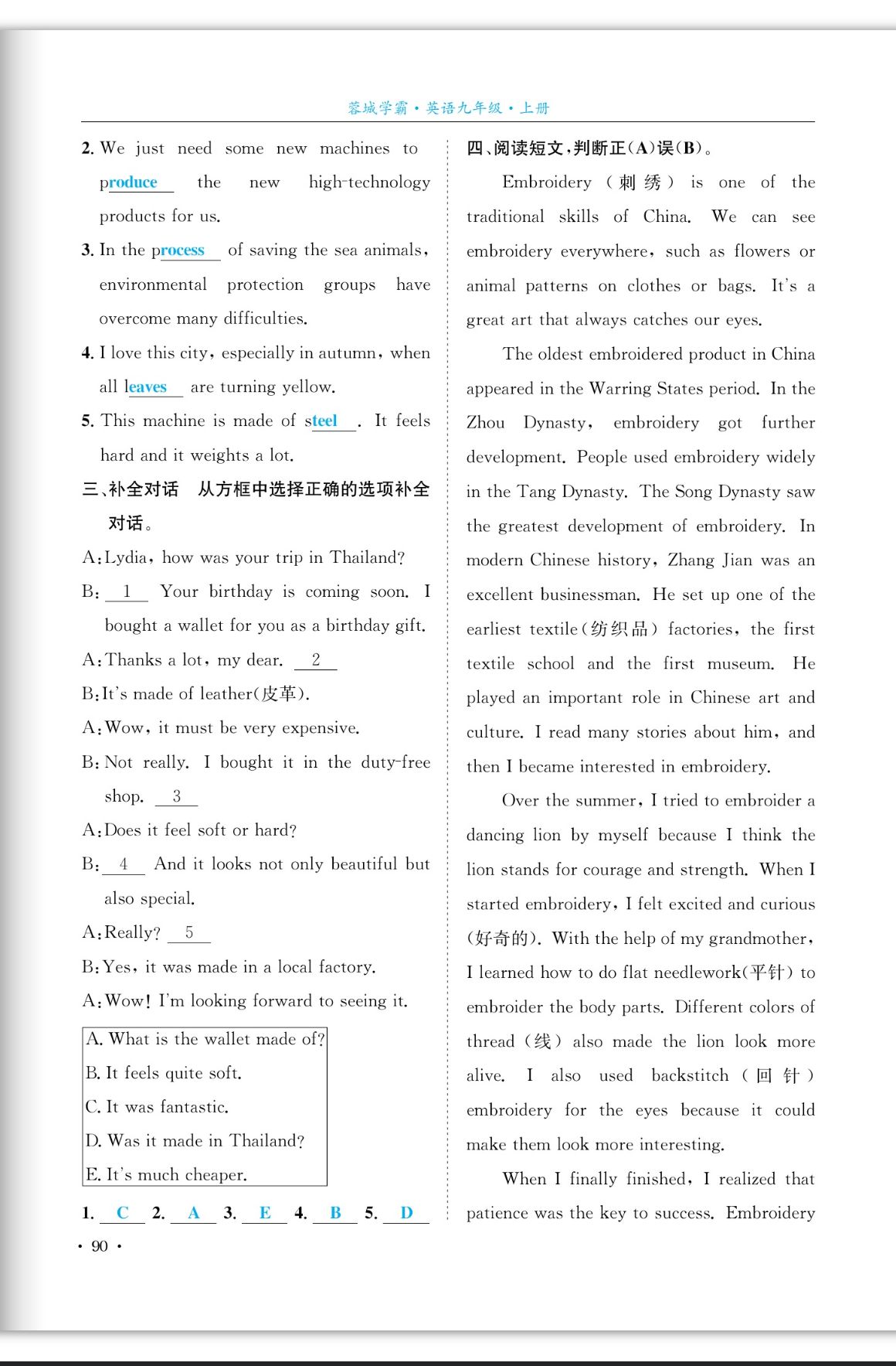 注:目前有些书本章节名称可能整理的还不是很完善,但都是按照顺序排列的,请同学们按照顺序仔细查找。练习册 2023年蓉城学霸九年级英语上册人教版成都专版 答案主要是用来给同学们做完题方便对答案用的,请勿直接抄袭。