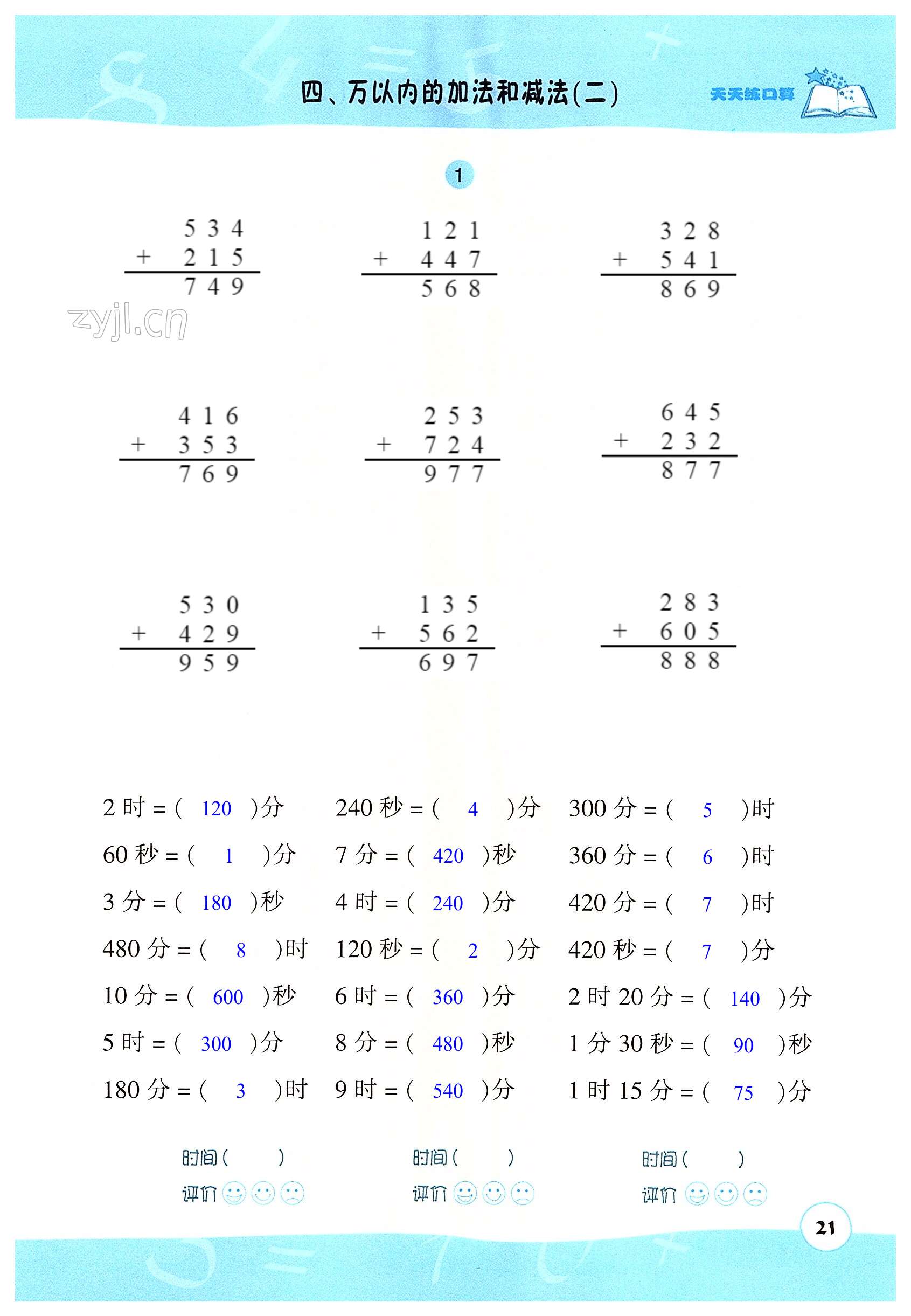 注:目前有些书本章节名称可能整理的还不是很完善,但都是按照顺序排列的,请同学们按照顺序仔细查找。练习册 2023年天天练口算三年级数学上册人教版 答案主要是用来给同学们做完题方便对答案用的,请勿直接抄袭。