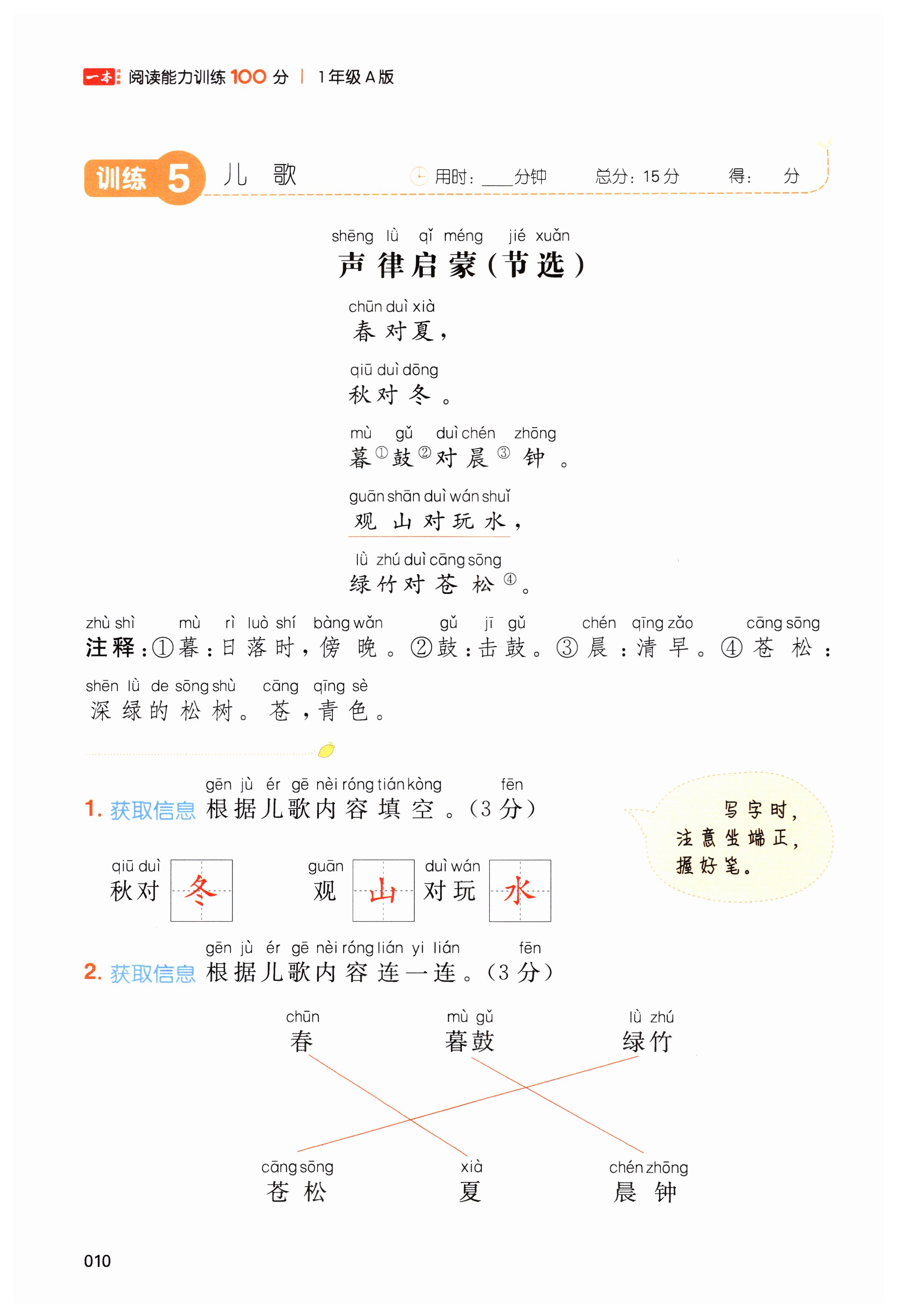 注:目前有些书本章节名称可能整理的还不是很完善,但都是按照顺序排列的,请同学们按照顺序仔细查找。练习册 2023年一本一年级语文上册人教版浙江专版 答案主要是用来给同学们做完题方便对答案用的,请勿直接抄袭。