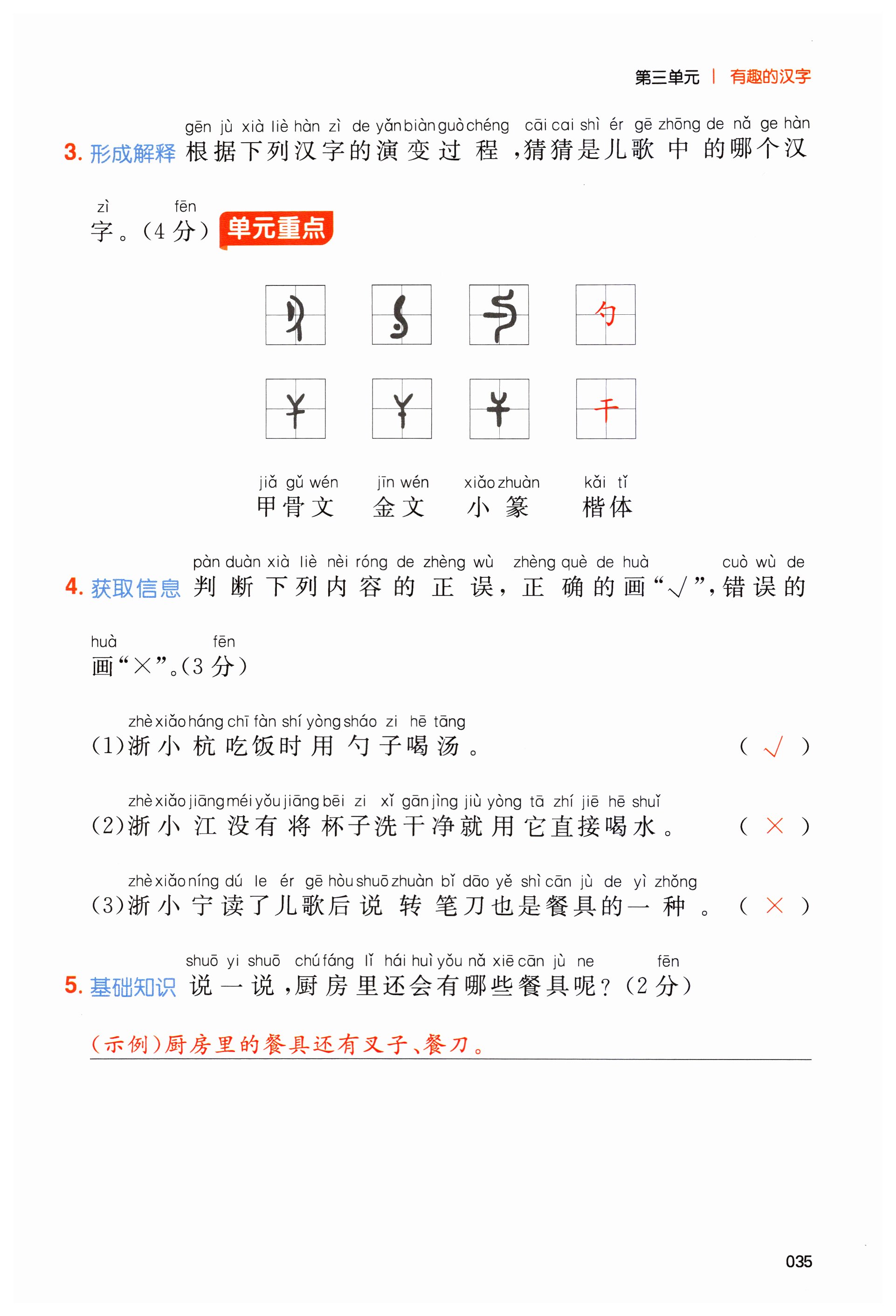 注:目前有些书本章节名称可能整理的还不是很完善,但都是按照顺序排列的,请同学们按照顺序仔细查找。练习册 2023年一本一年级语文上册人教版浙江专版 答案主要是用来给同学们做完题方便对答案用的,请勿直接抄袭。