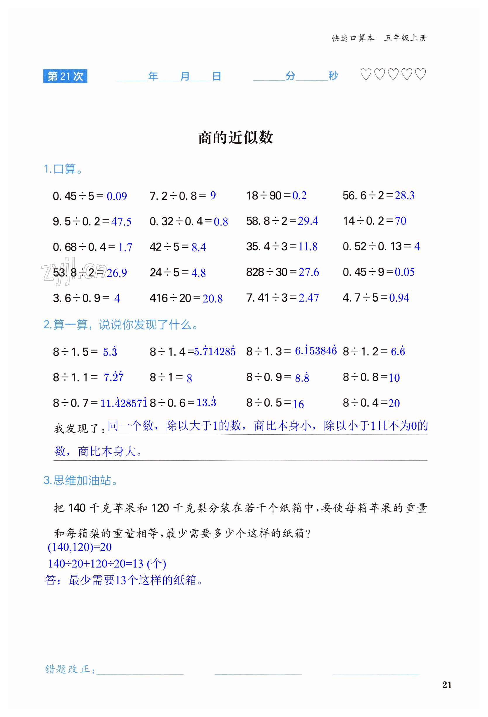 注:目前有些书本章节名称可能整理的还不是很完善,但都是按照顺序排列的,请同学们按照顺序仔细查找。练习册 2023年快速口算本五年级上册人教版 答案主要是用来给同学们做完题方便对答案用的,请勿直接抄袭。