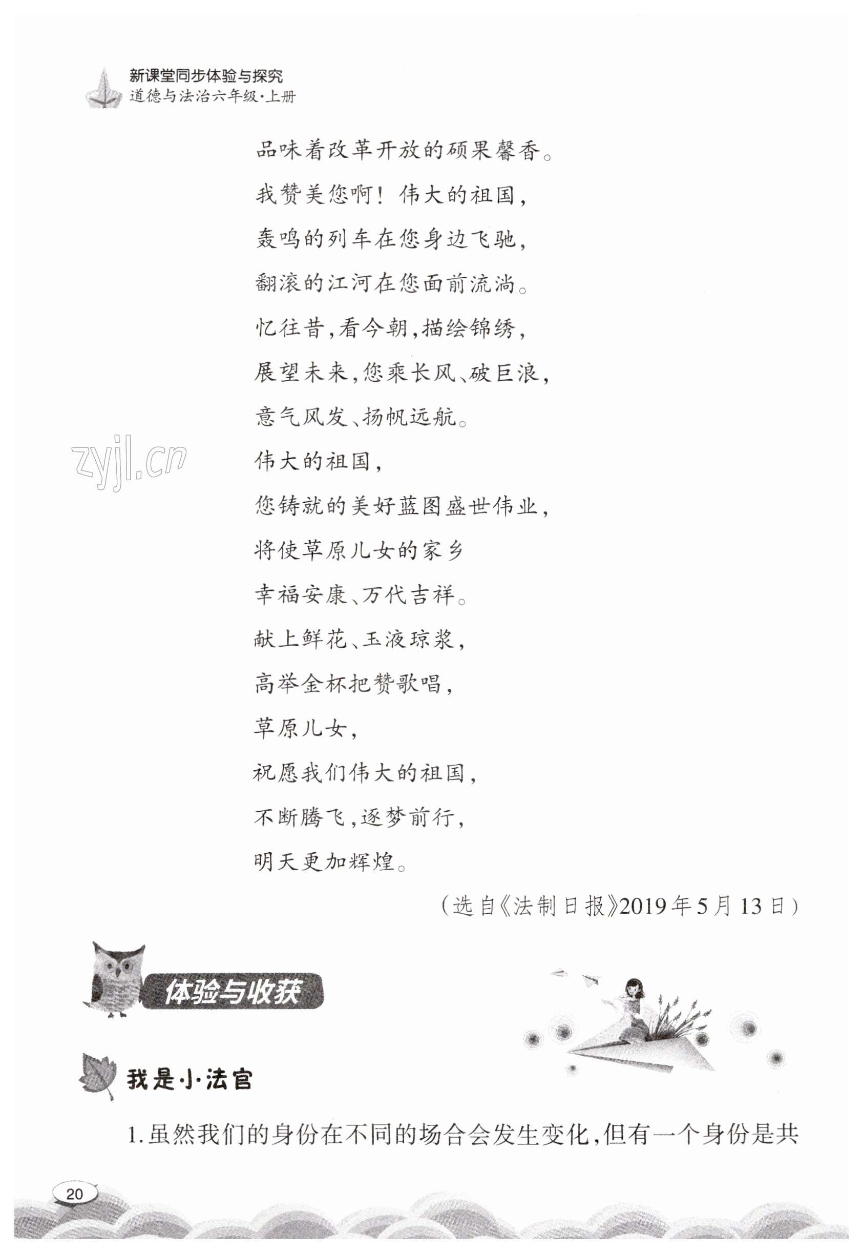 2023年新课堂同步体验与探究六年级道德与法治上册人教版