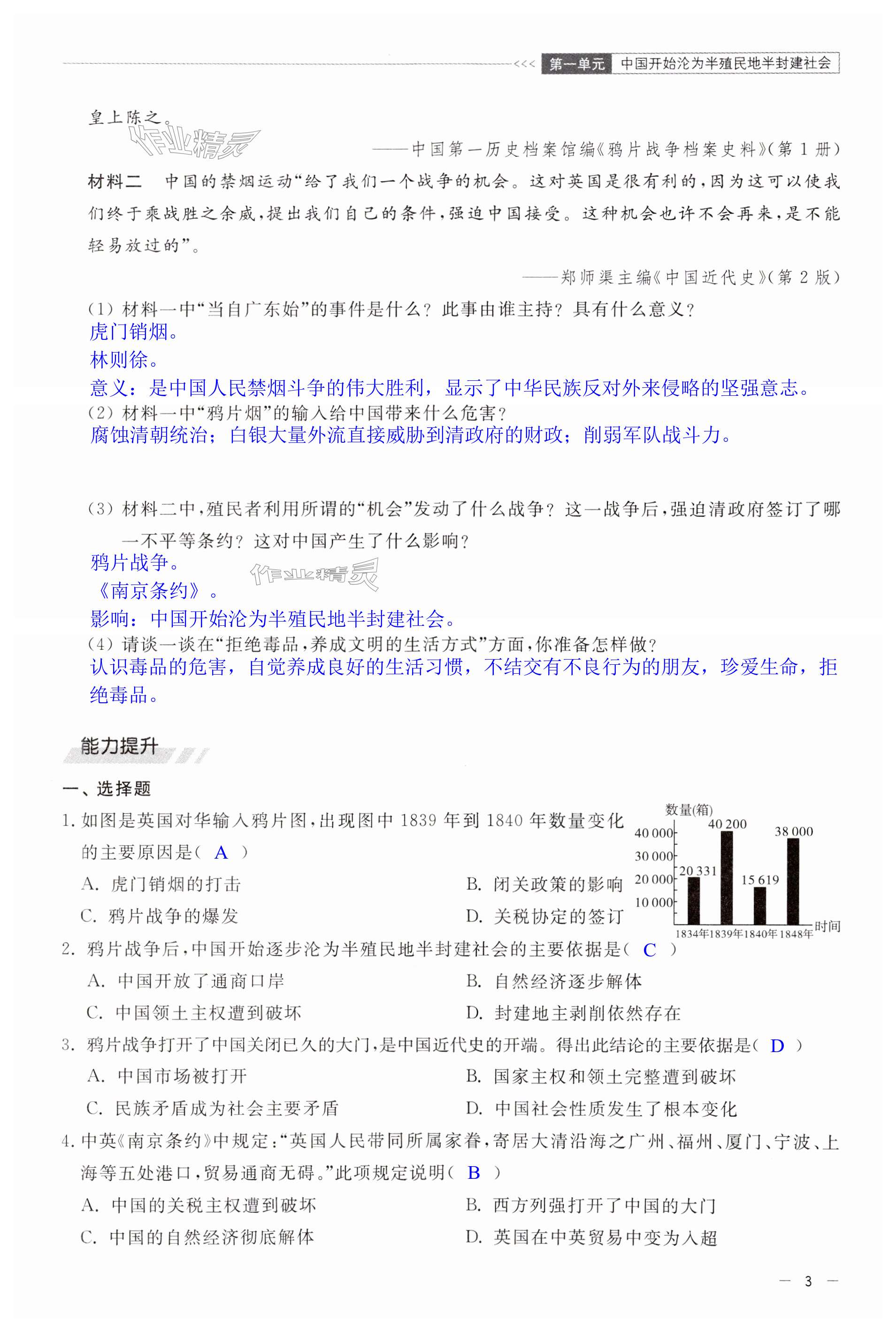 注:目前有些书本章节名称可能整理的还不是很完善,但都是按照顺序排列的,请同学们按照顺序仔细查找。练习册 2023年中国历史同步练习册八年级上册人教版 答案主要是用来给同学们做完题方便对答案用的,请勿直接抄袭。