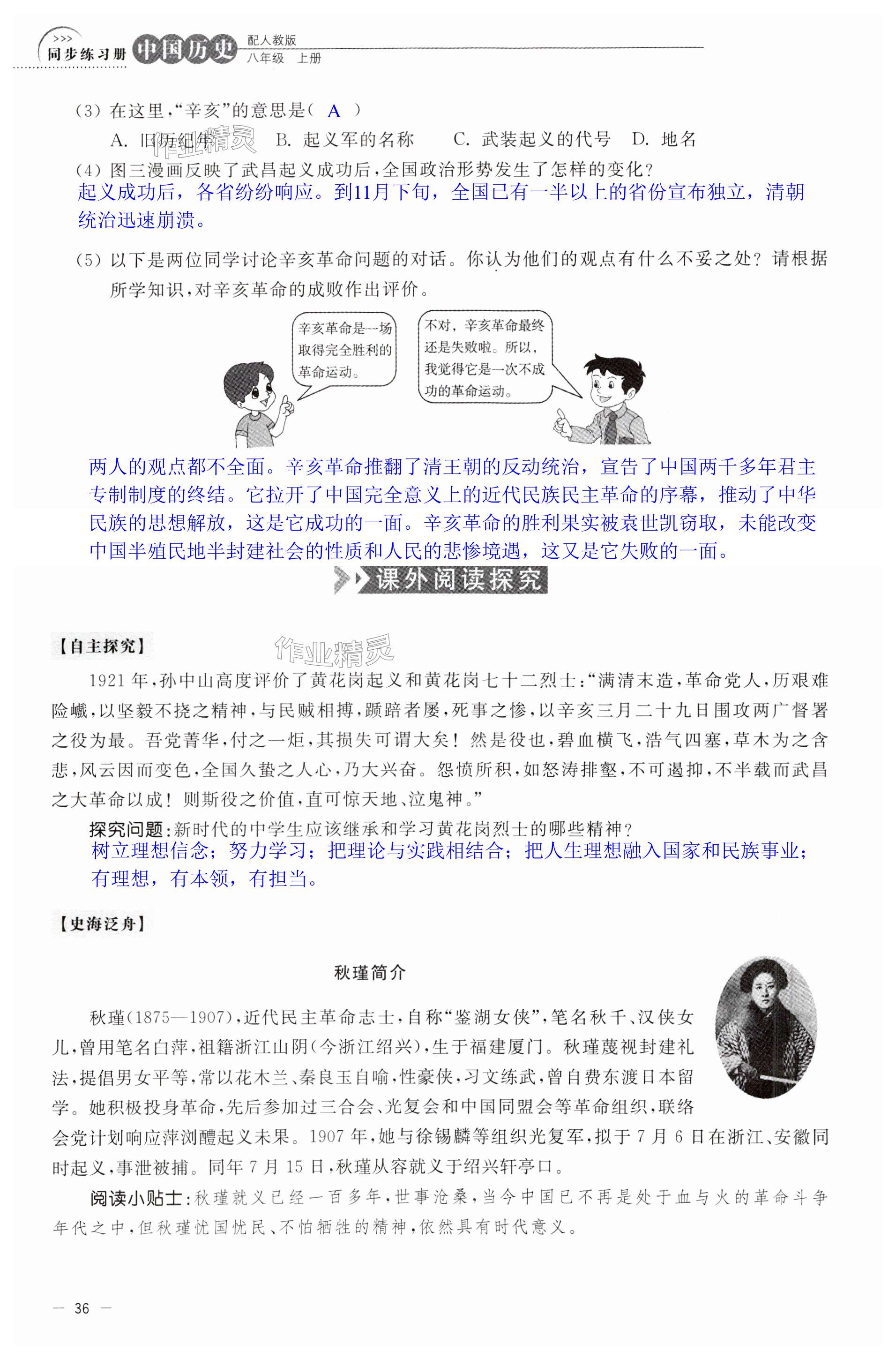 注:目前有些书本章节名称可能整理的还不是很完善,但都是按照顺序排列的,请同学们按照顺序仔细查找。练习册 2023年中国历史同步练习册八年级上册人教版 答案主要是用来给同学们做完题方便对答案用的,请勿直接抄袭。