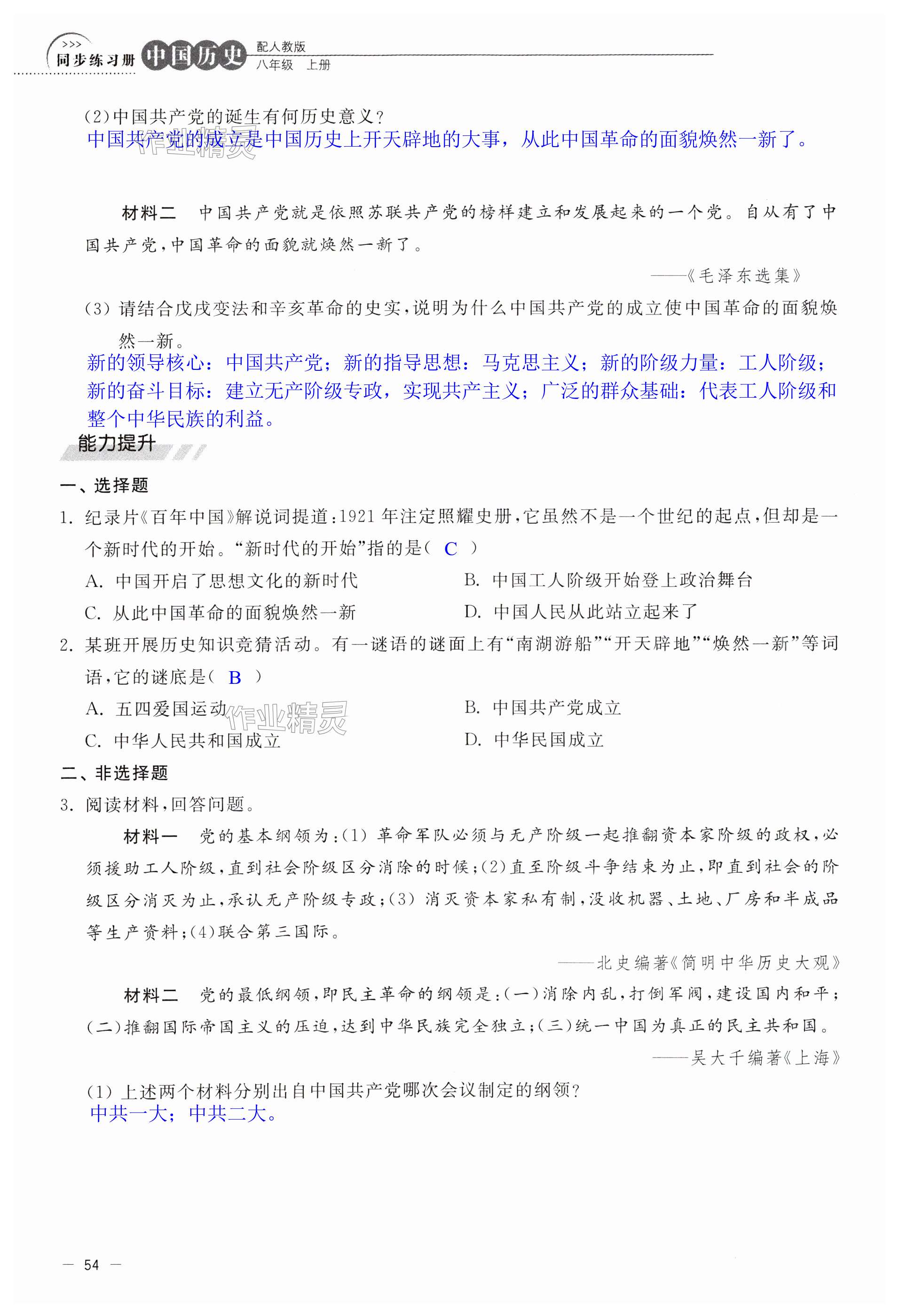 注:目前有些书本章节名称可能整理的还不是很完善,但都是按照顺序排列的,请同学们按照顺序仔细查找。练习册 2023年中国历史同步练习册八年级上册人教版 答案主要是用来给同学们做完题方便对答案用的,请勿直接抄袭。
