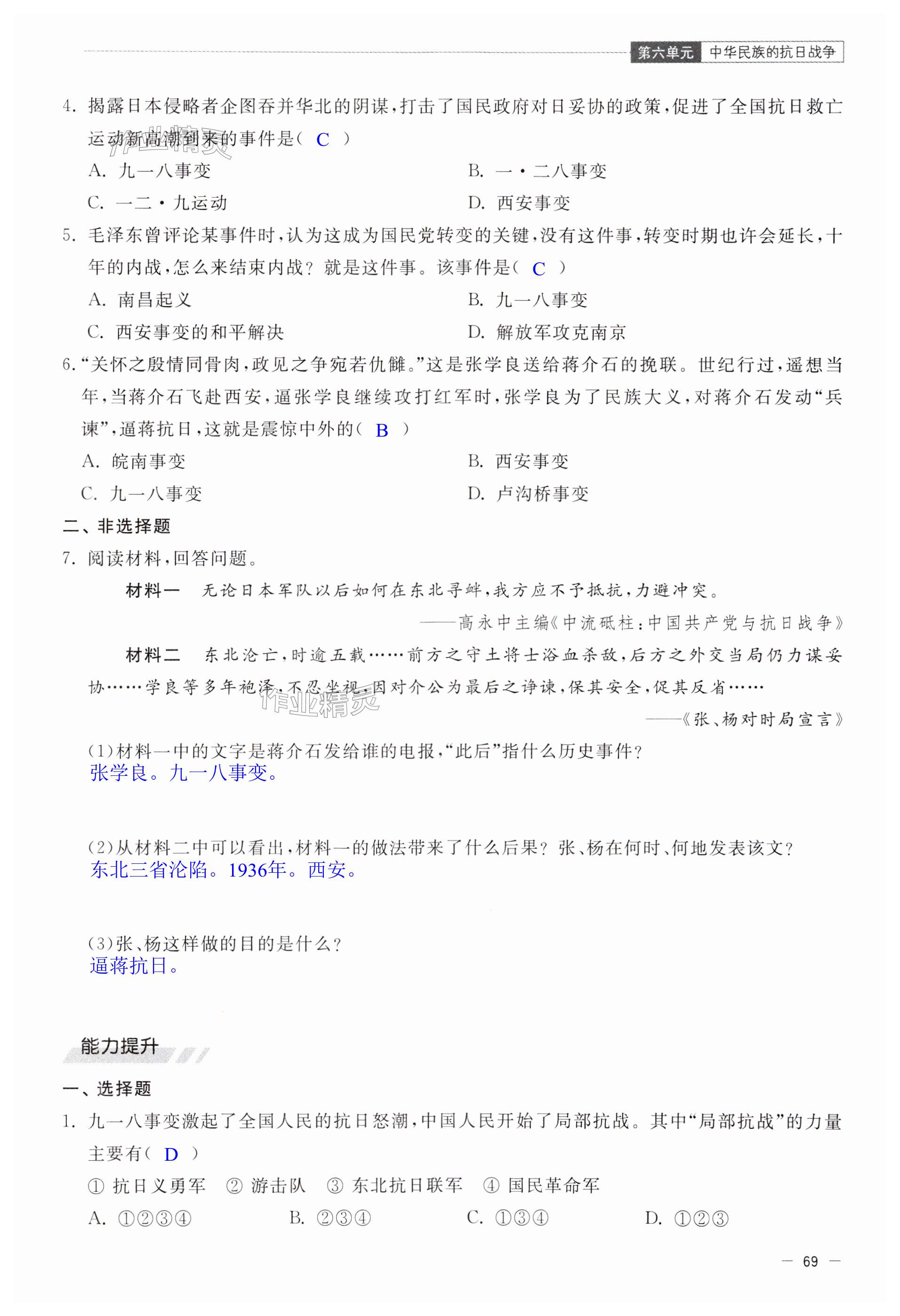 注:目前有些书本章节名称可能整理的还不是很完善,但都是按照顺序排列的,请同学们按照顺序仔细查找。练习册 2023年中国历史同步练习册八年级上册人教版 答案主要是用来给同学们做完题方便对答案用的,请勿直接抄袭。