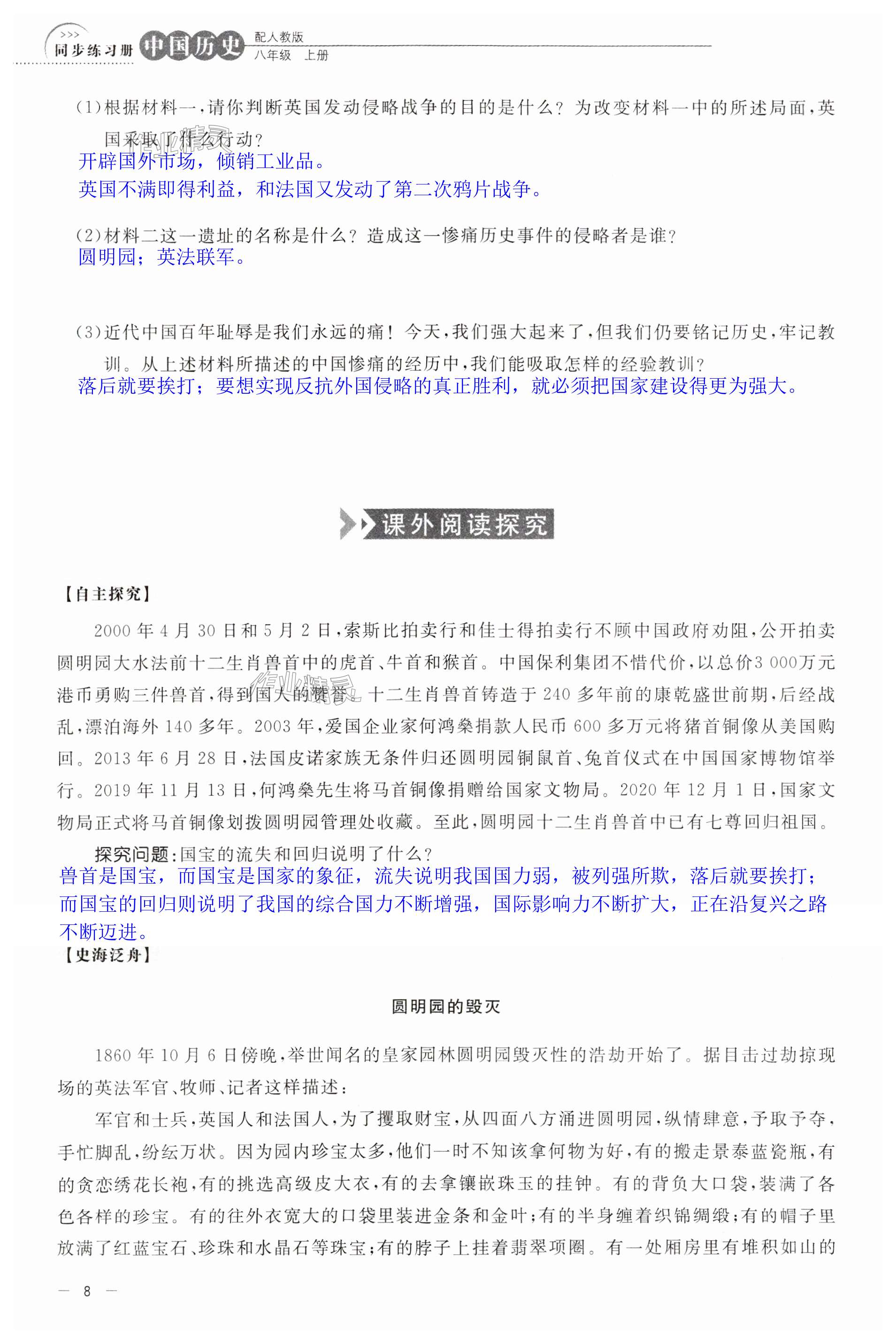 2023年中国历史同步练习册八年级上册人教版