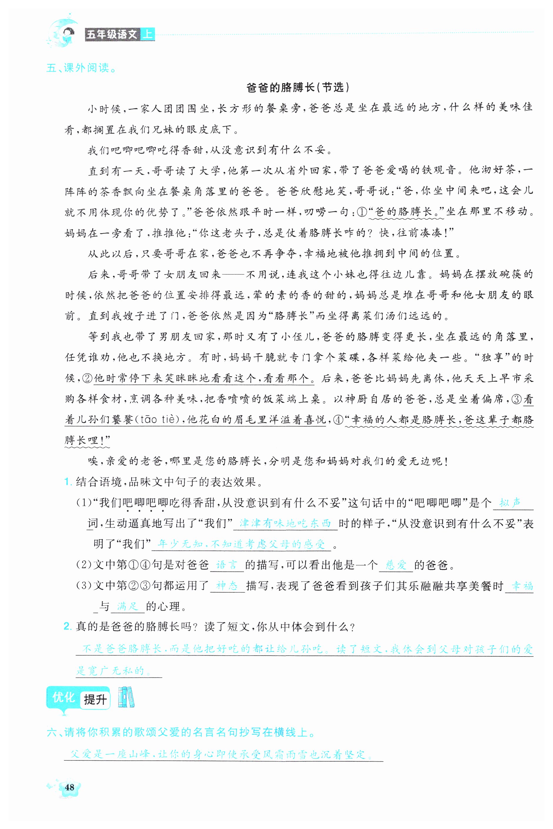 《2023年提分教练五年级语文上册人教版东莞专版》