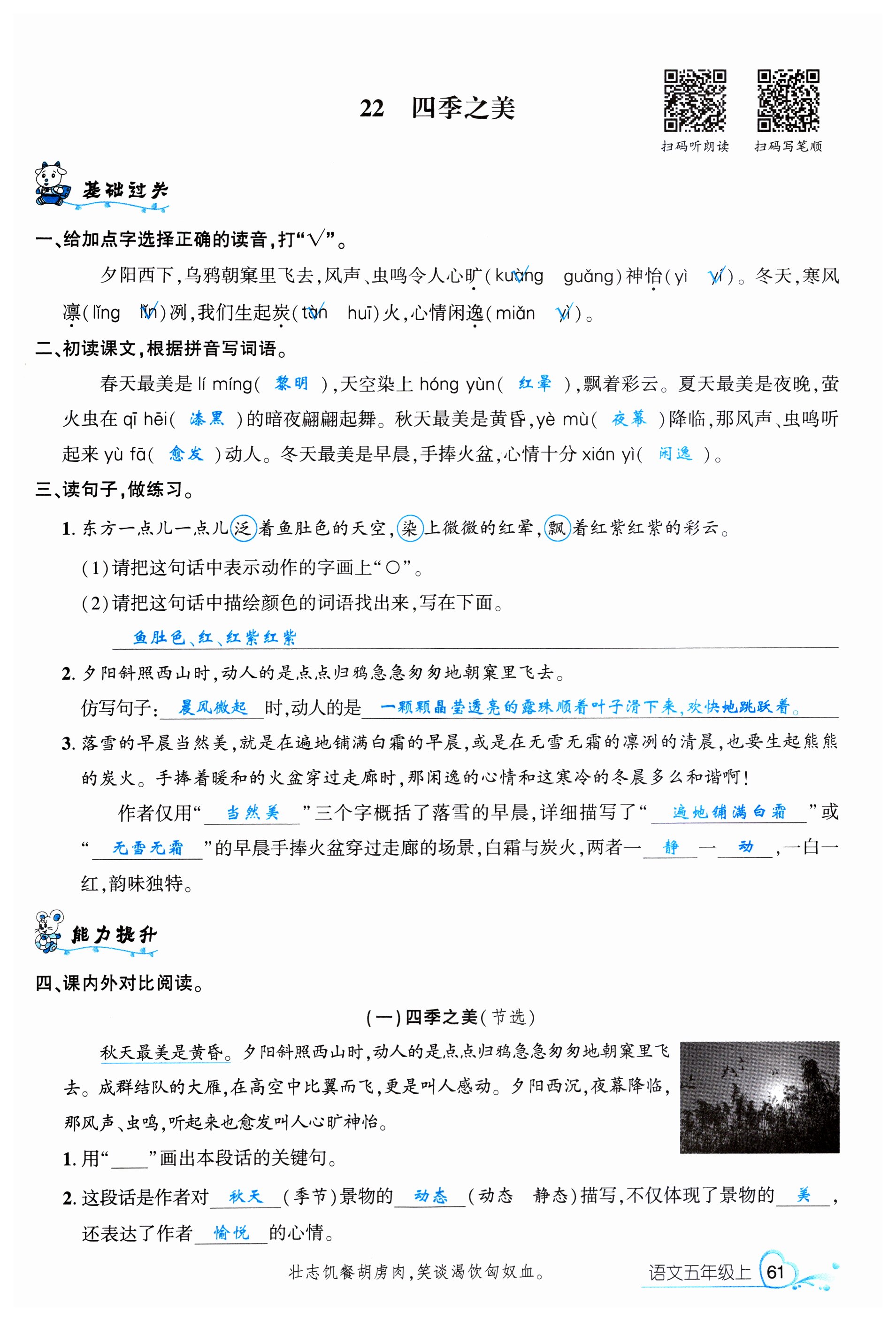 注:目前有些书本章节名称可能整理的还不是很完善,但都是按照顺序排列的,请同学们按照顺序仔细查找。练习册 2023年名校课堂五年级语文上册人教版福建专版 答案主要是用来给同学们做完题方便对答案用的,请勿直接抄袭。