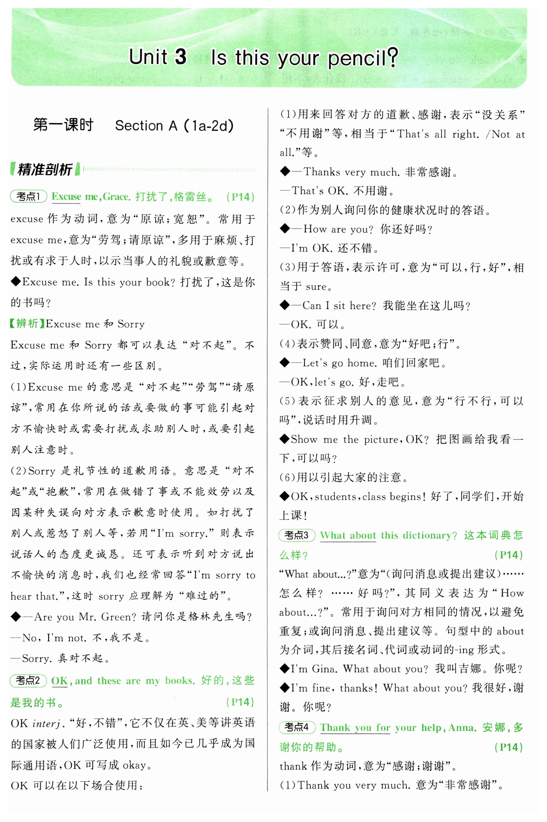 注:目前有些书本章节名称可能整理的还不是很完善,但都是按照顺序排列的,请同学们按照顺序仔细查找。练习册 2023年名校零距离七年级英语上册人教版 答案主要是用来给同学们做完题方便对答案用的,请勿直接抄袭。