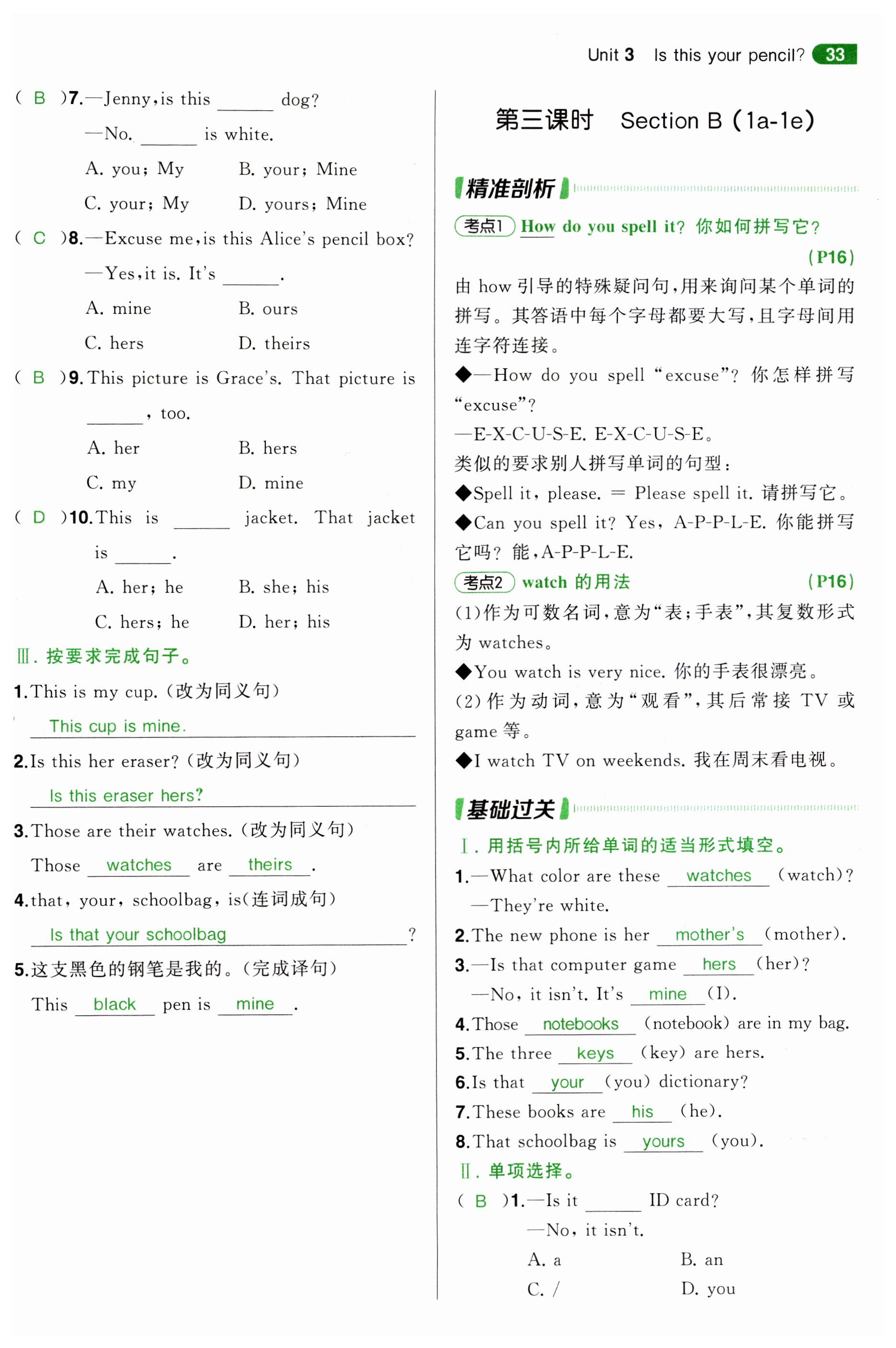 注:目前有些书本章节名称可能整理的还不是很完善,但都是按照顺序排列的,请同学们按照顺序仔细查找。练习册 2023年名校零距离七年级英语上册人教版 答案主要是用来给同学们做完题方便对答案用的,请勿直接抄袭。